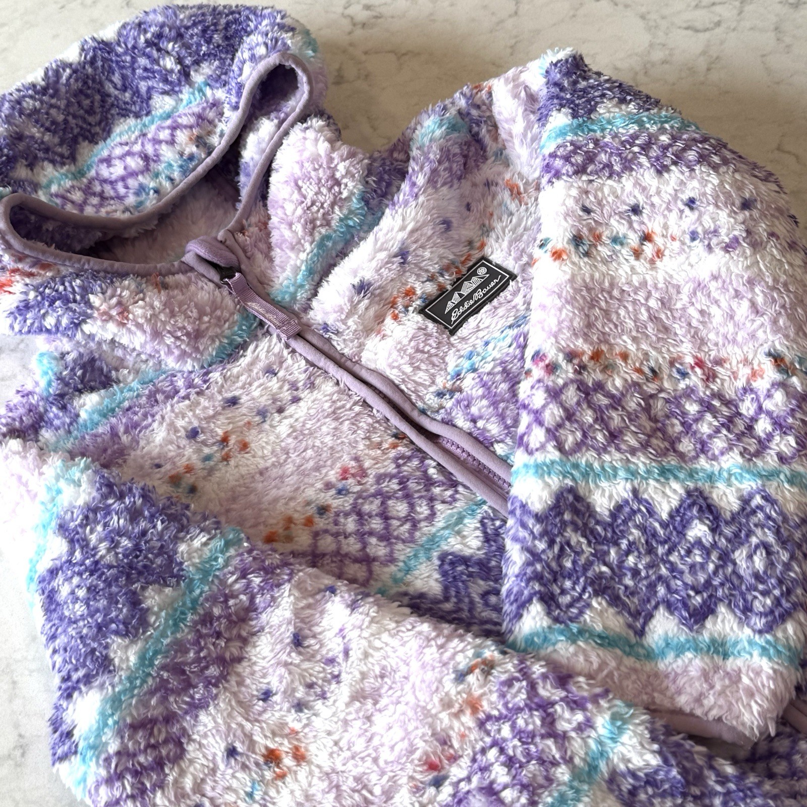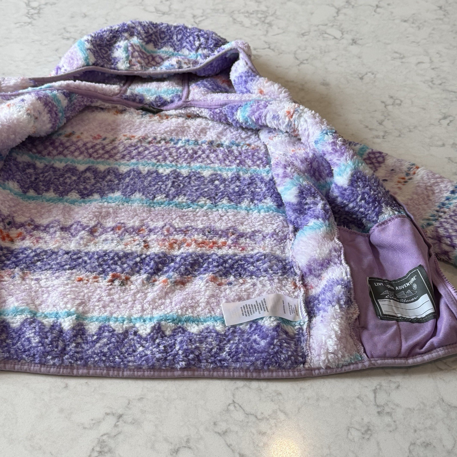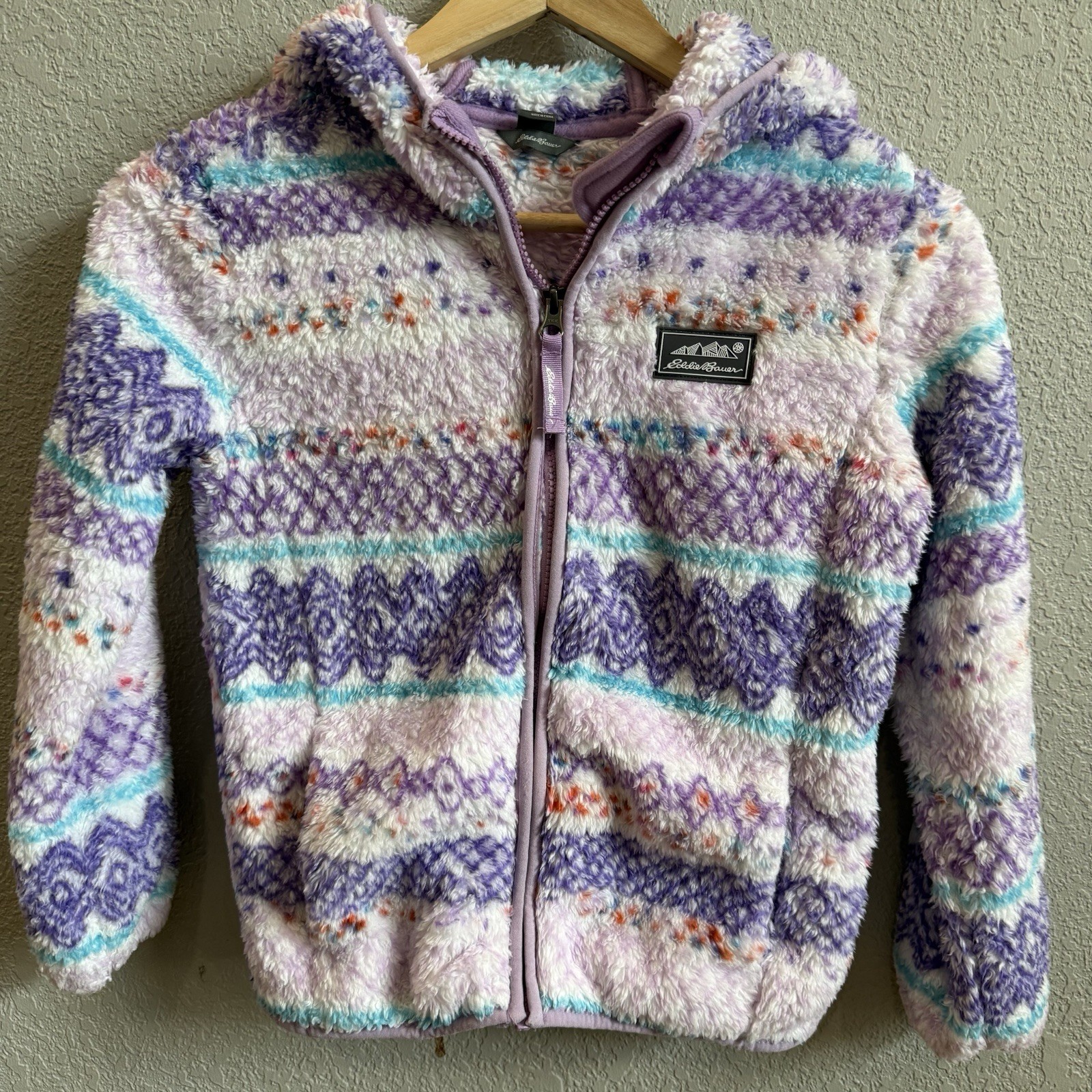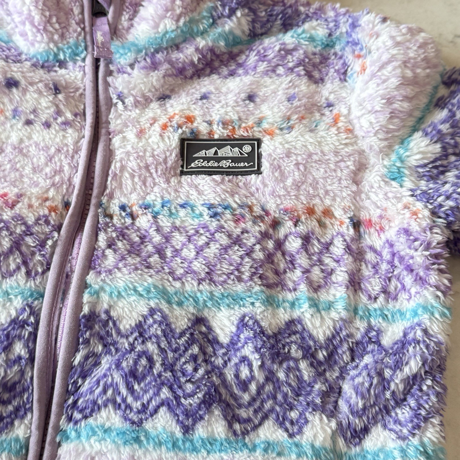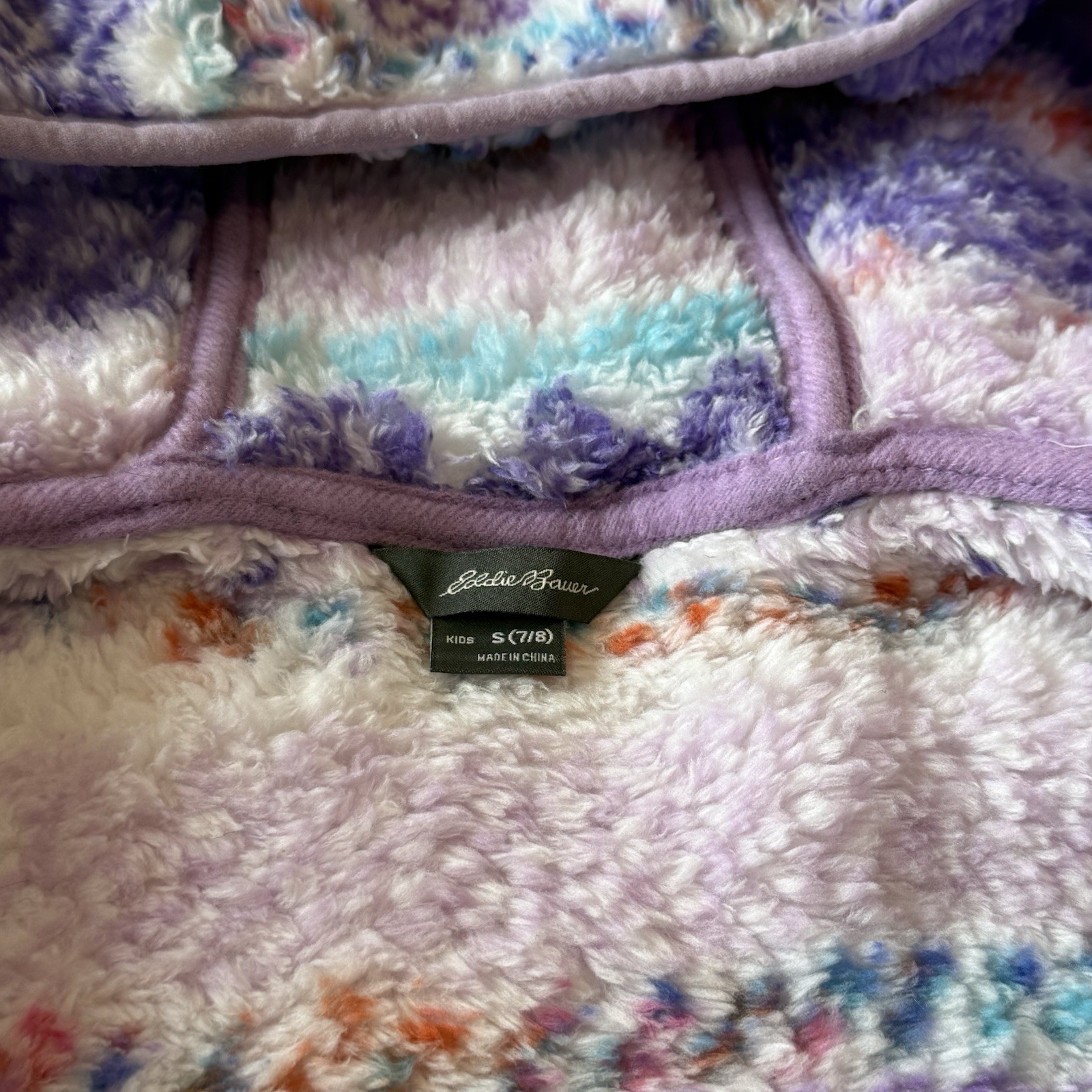 Eddie Bauer Kids Sherpa Fleece Full-zip Hooded Jacket S 7-8 PinkPurpleTurquoise