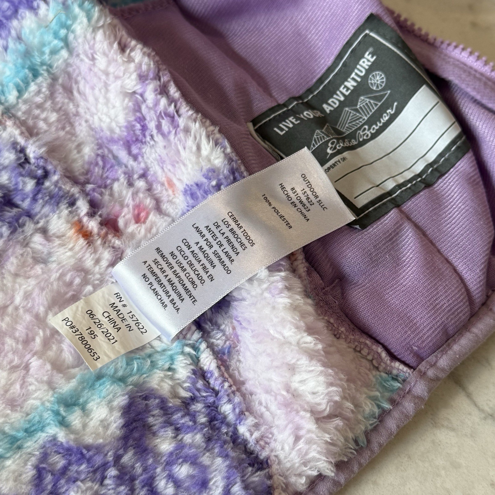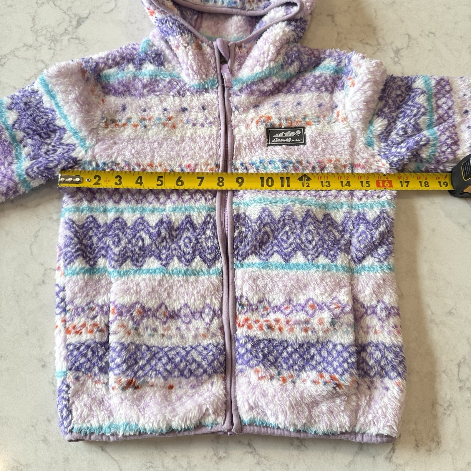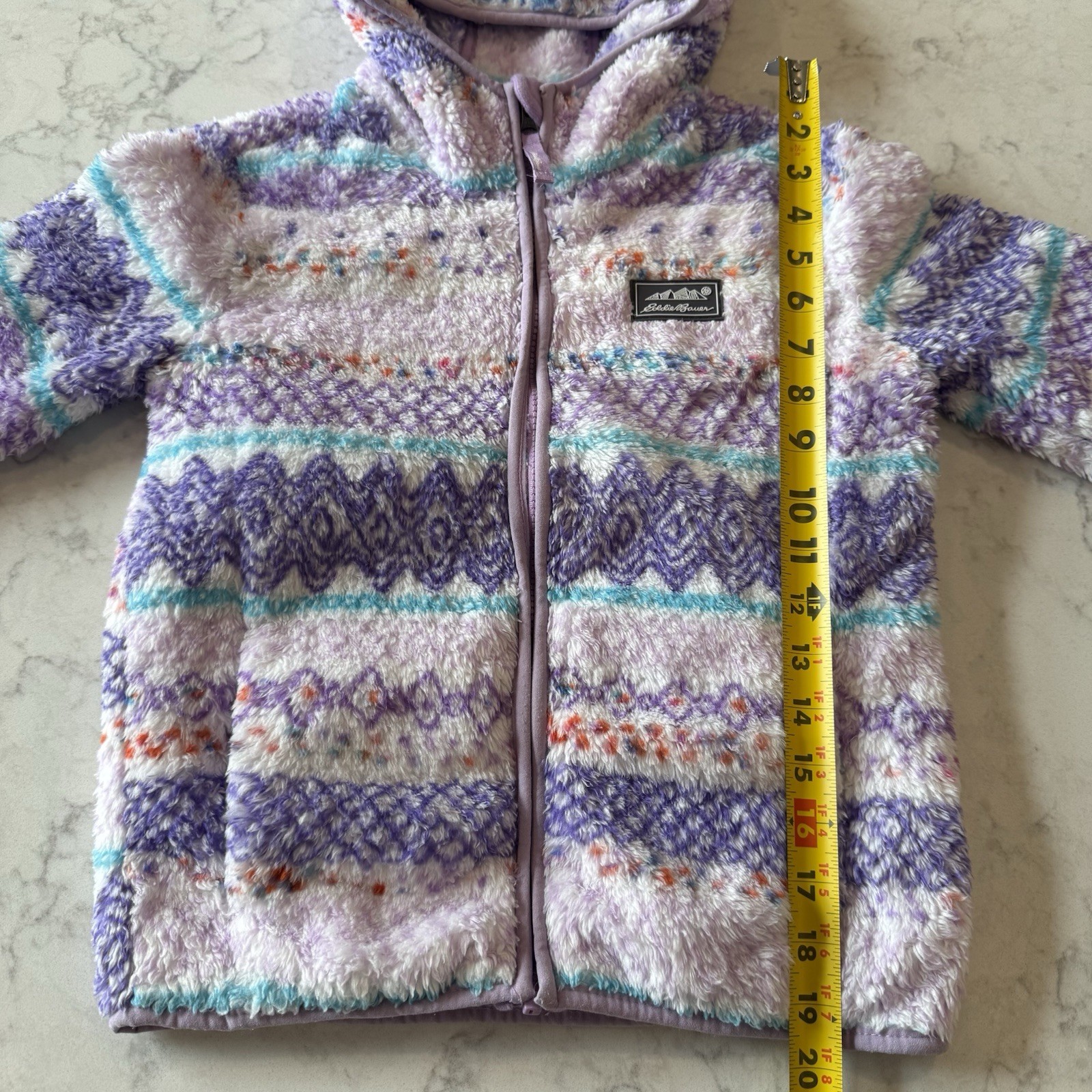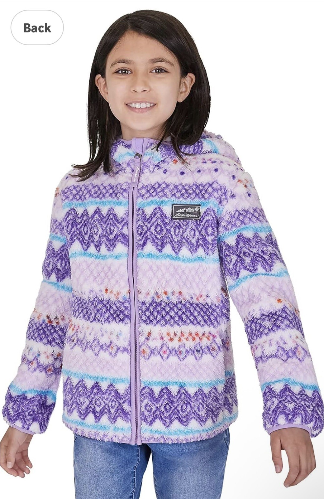 как выглядит Eddie Bauer Kids Sherpa Fleece Full-zip Hooded Jacket S 7-8 PinkPurpleTurquoise фото