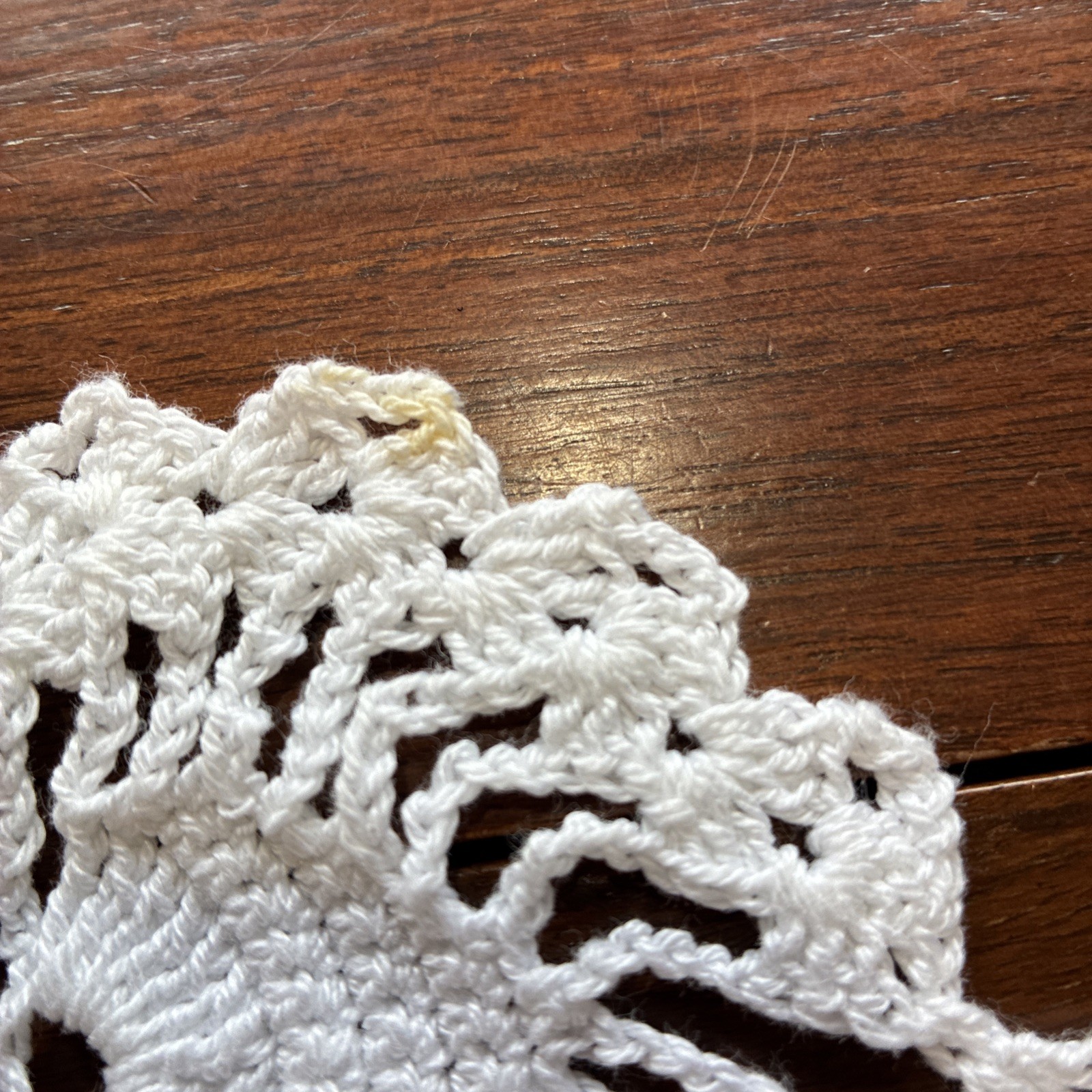 как выглядит VTG White Crocheted Handmade Collar Button Close 4.5 Wide фото
