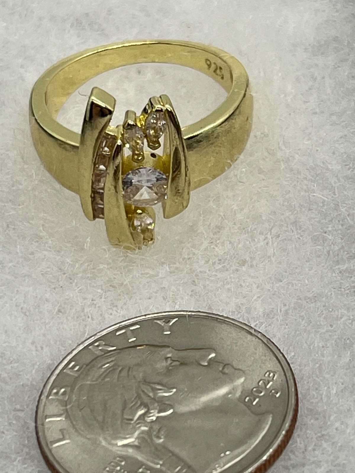как выглядит Gold Vermeil 925 Silver Covered By Gold Zirconia Ring Size 9.5 фото