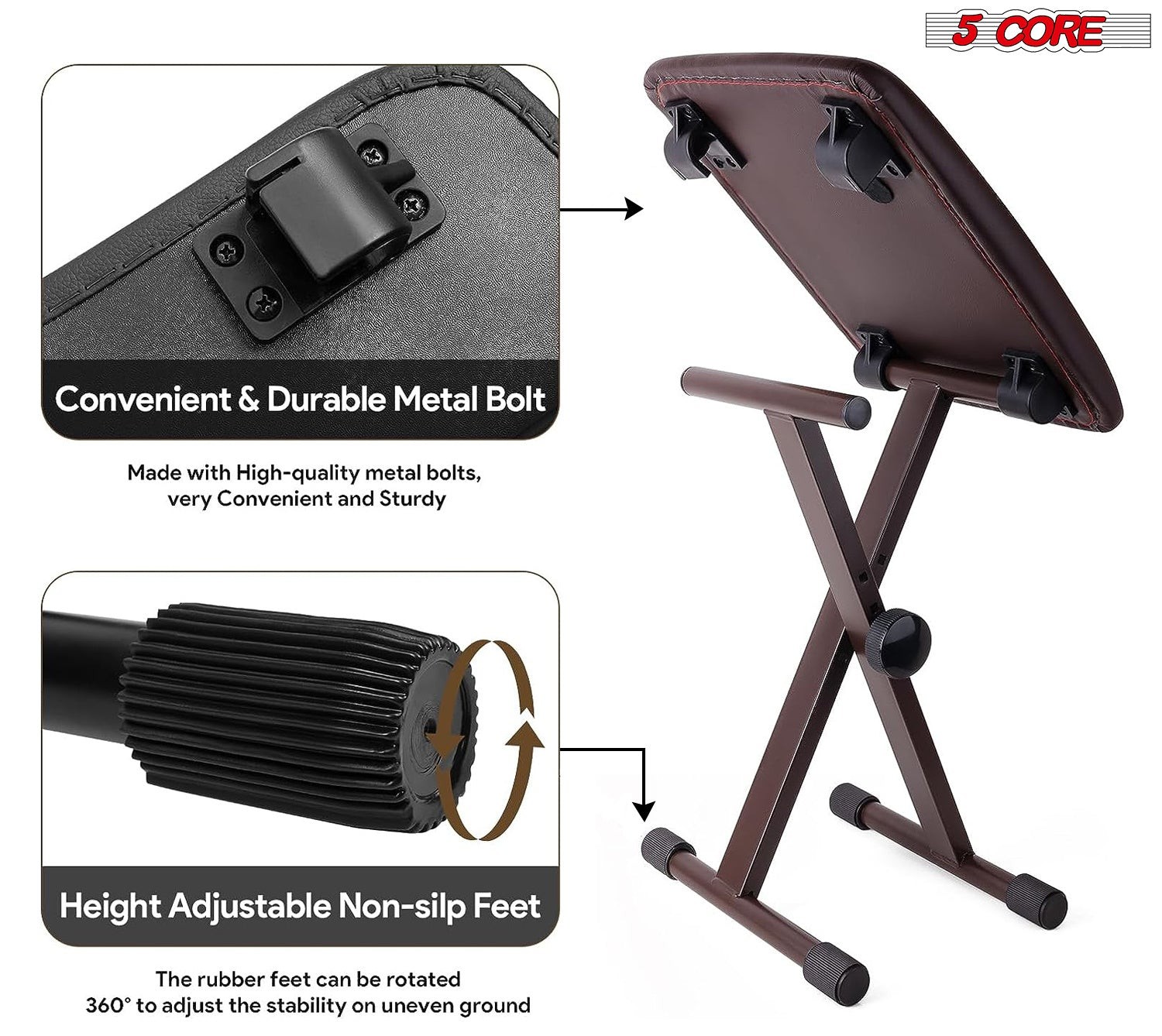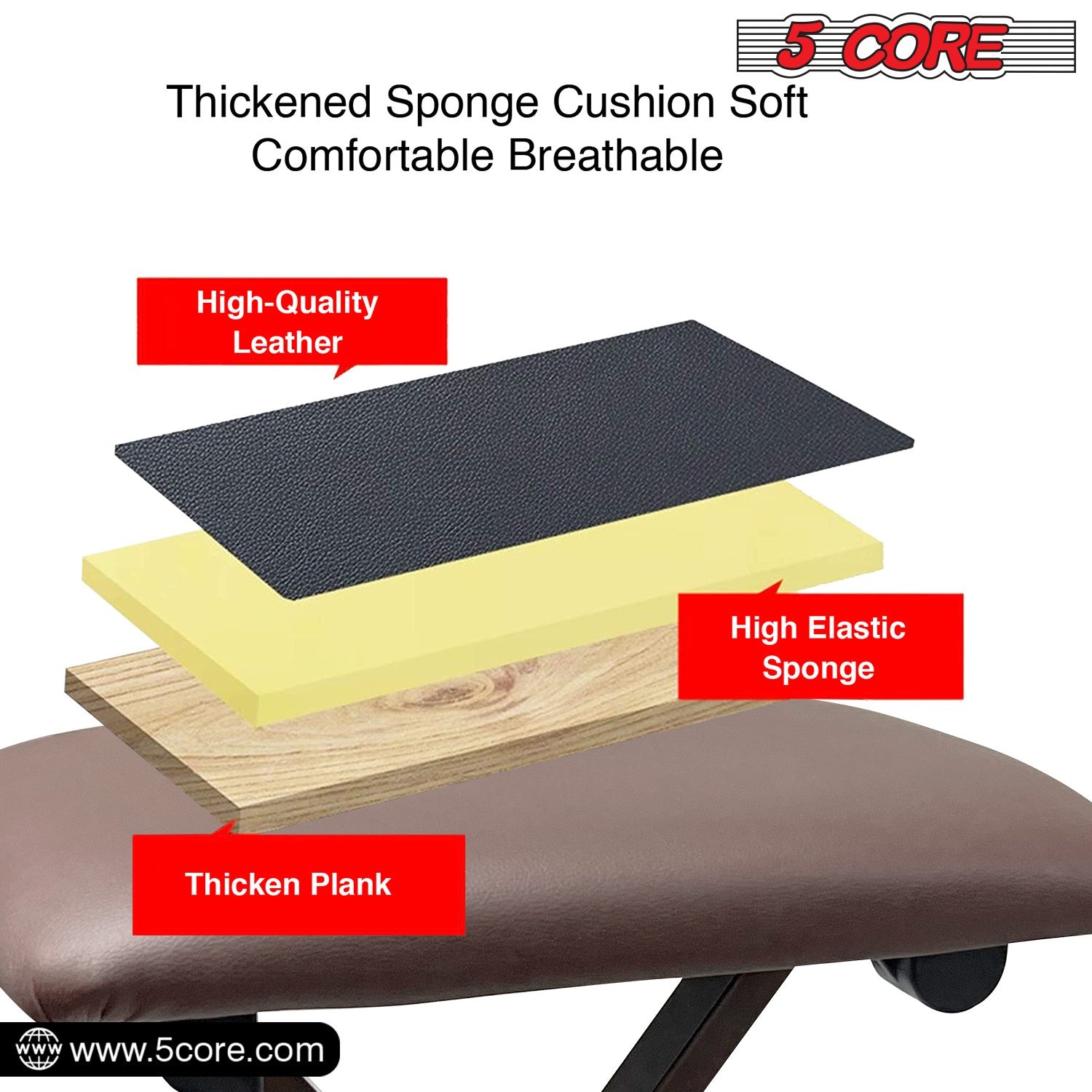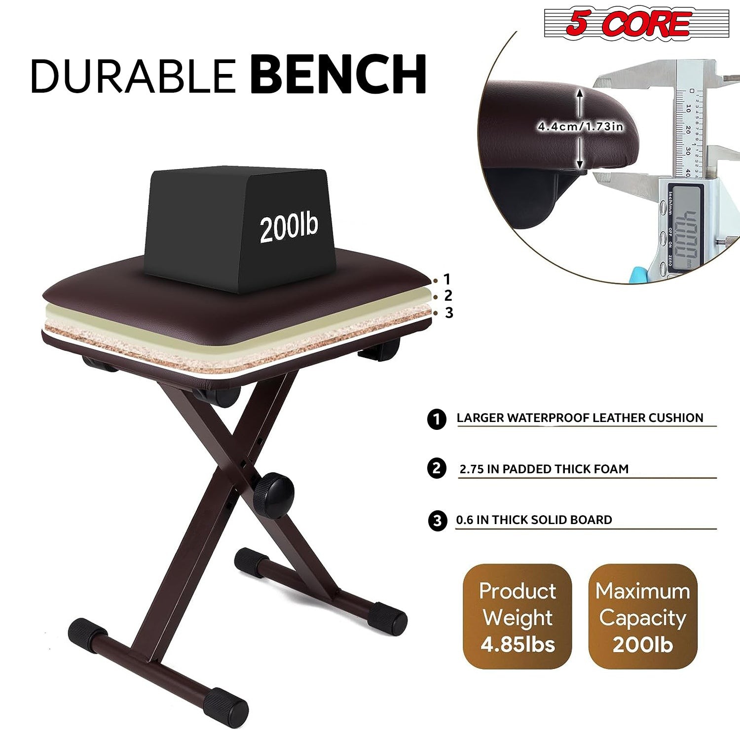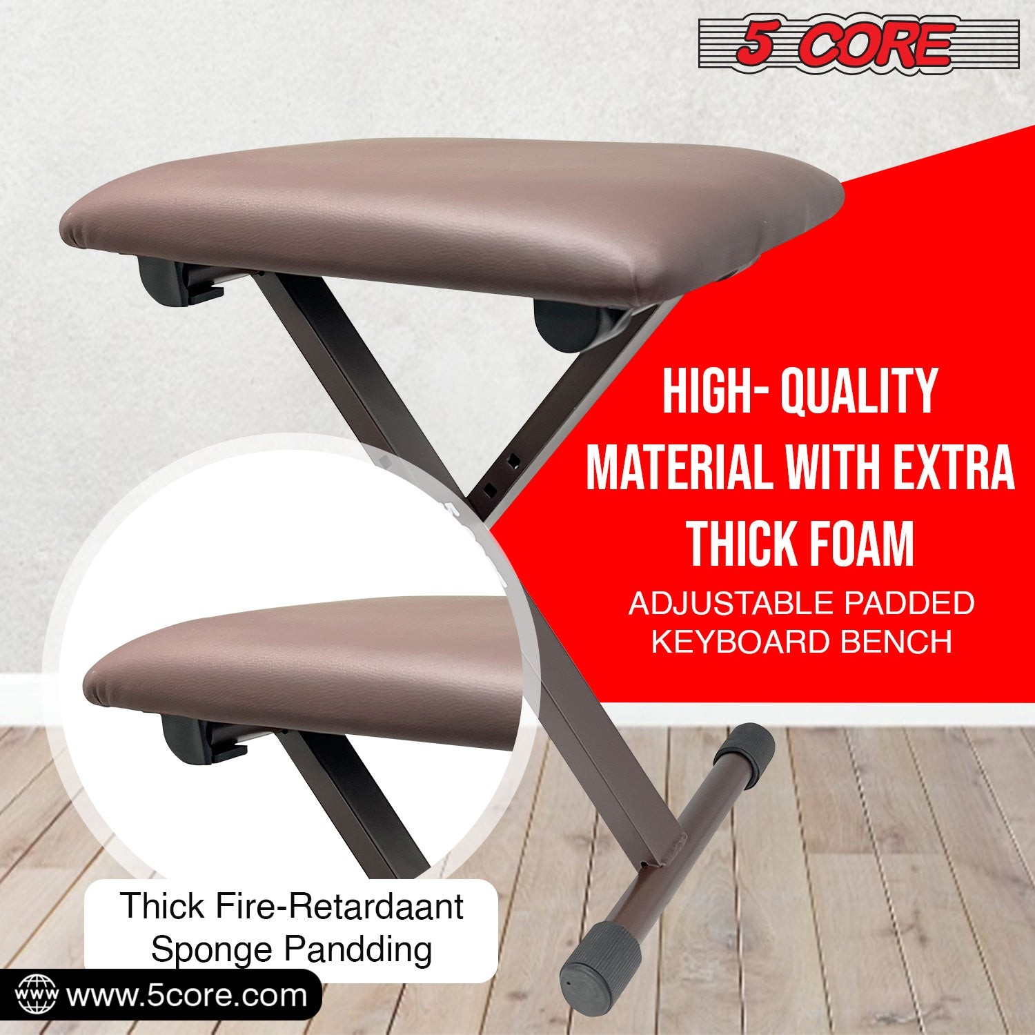 5 Core Keyboard Bench X Style Piano Stool Thick Padded Seat 16.3 to 19.6 inch Ad