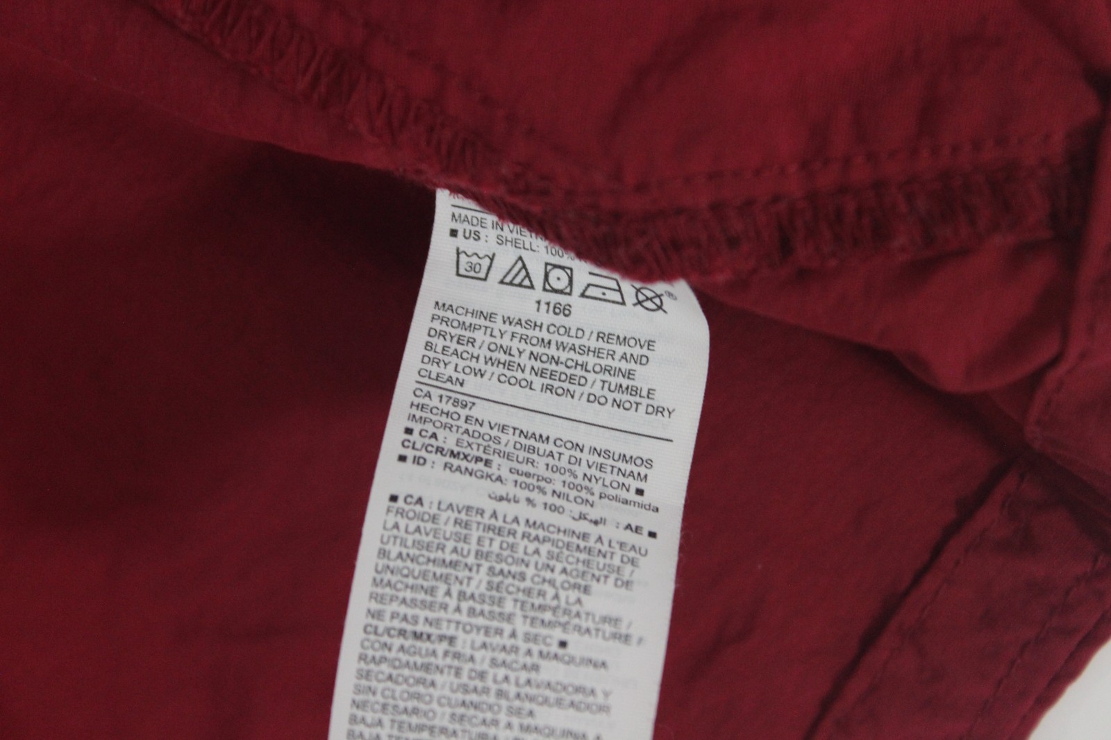 Outer Shell Material: 100% Nylon