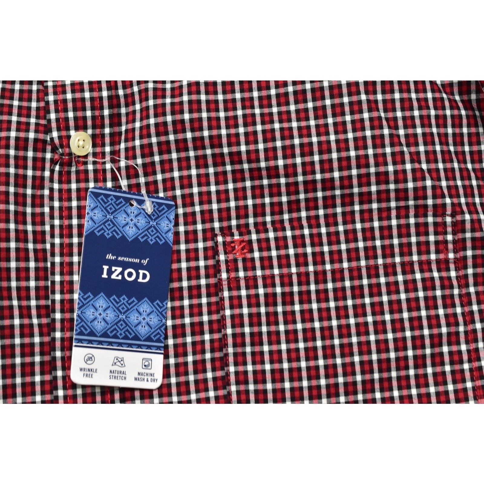 Izod Men's Red Gingham Wrinkle Free Stretch Long Sleeve Button Shirt Size L