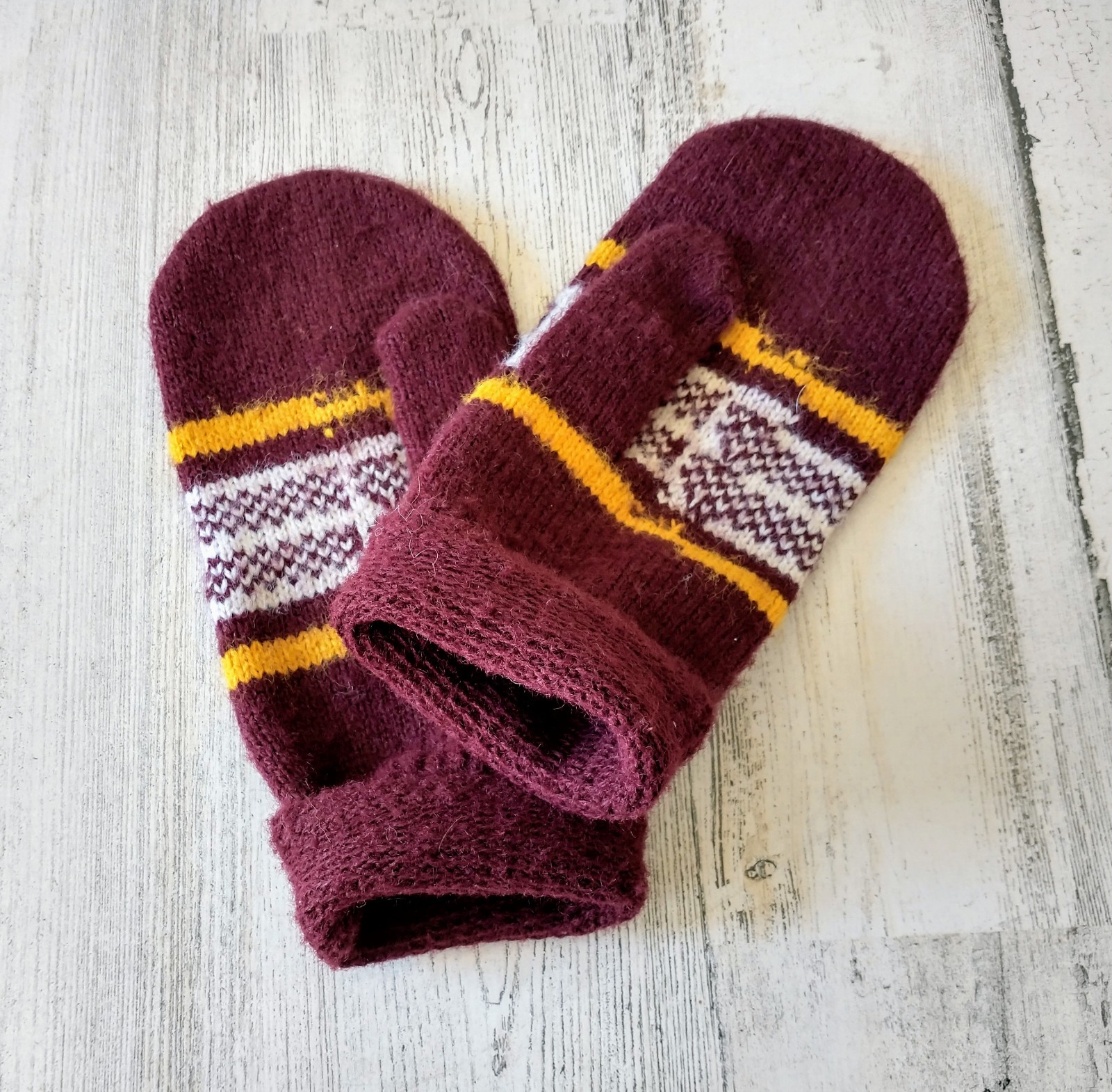 как выглядит Vintage GOLD COUNTRY Mittens Maroon Gold Stretch Knit College School Souvenir фото