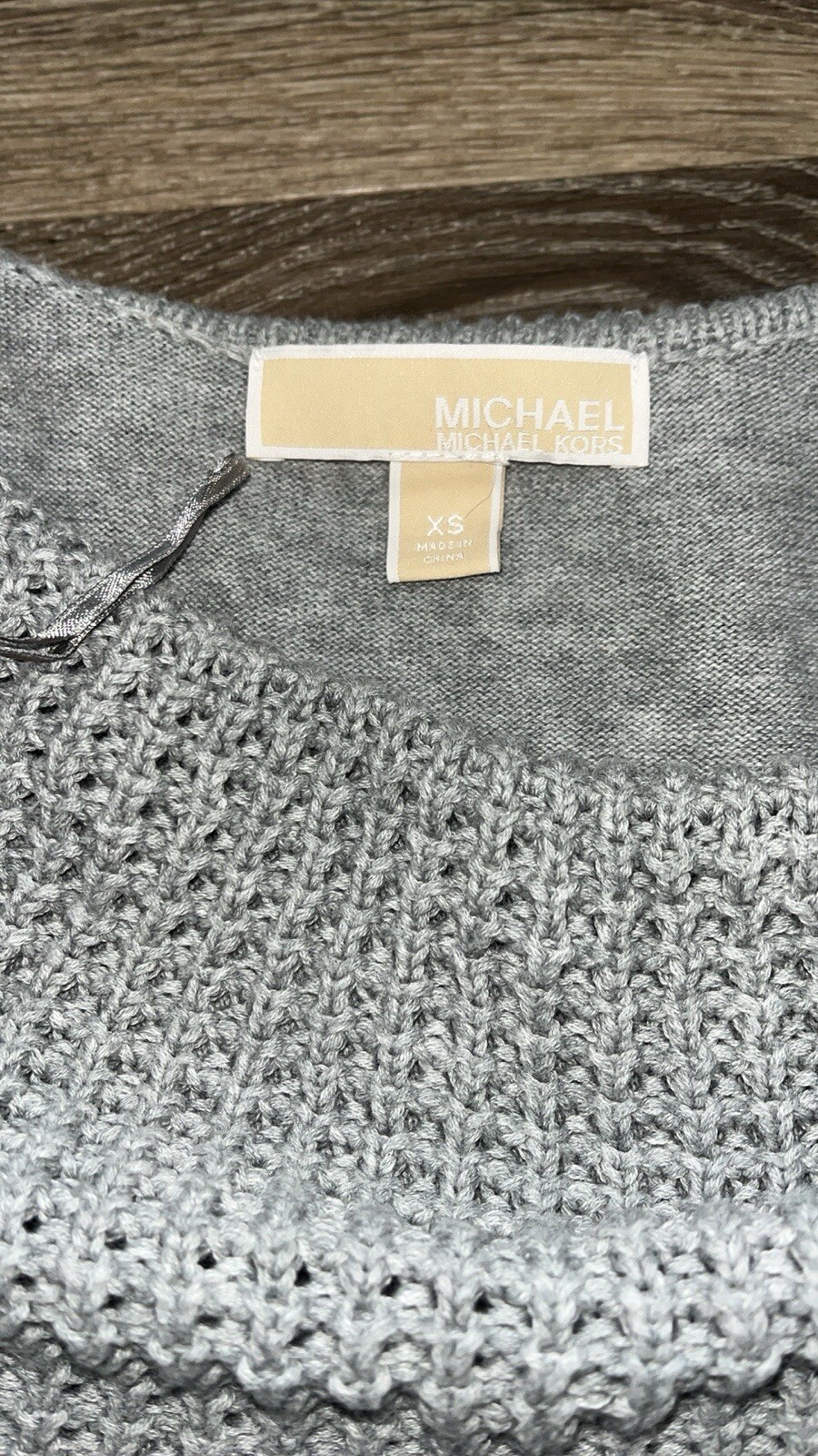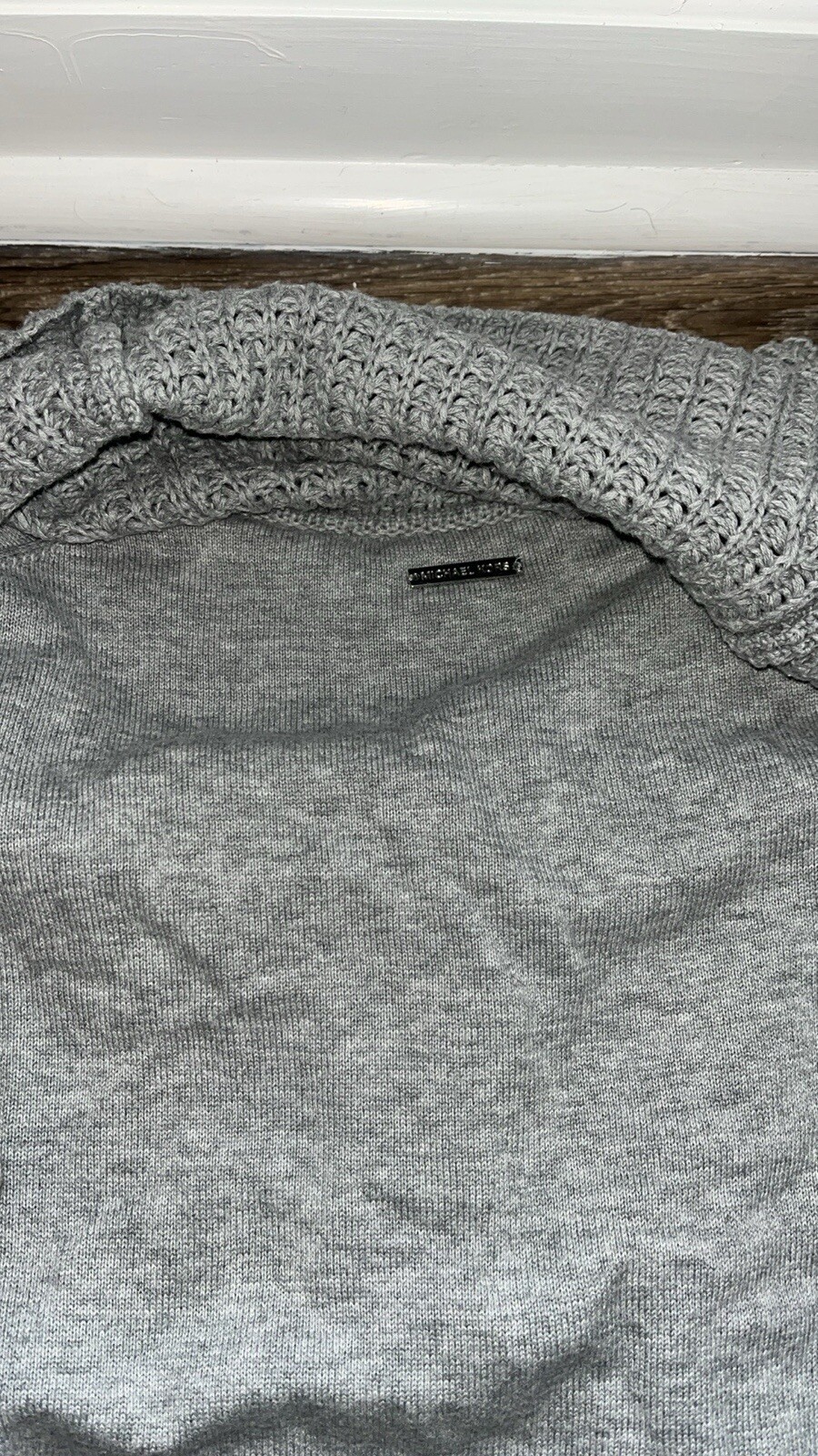 как выглядит Michael Kors Womens grey off the shoulder sweater фото