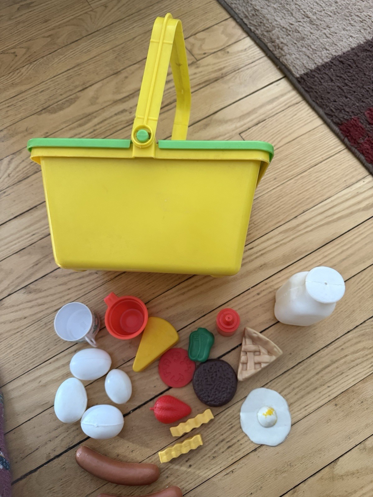 как выглядит Vintage Plastic Yellow Picnic Basket with Play Food фото