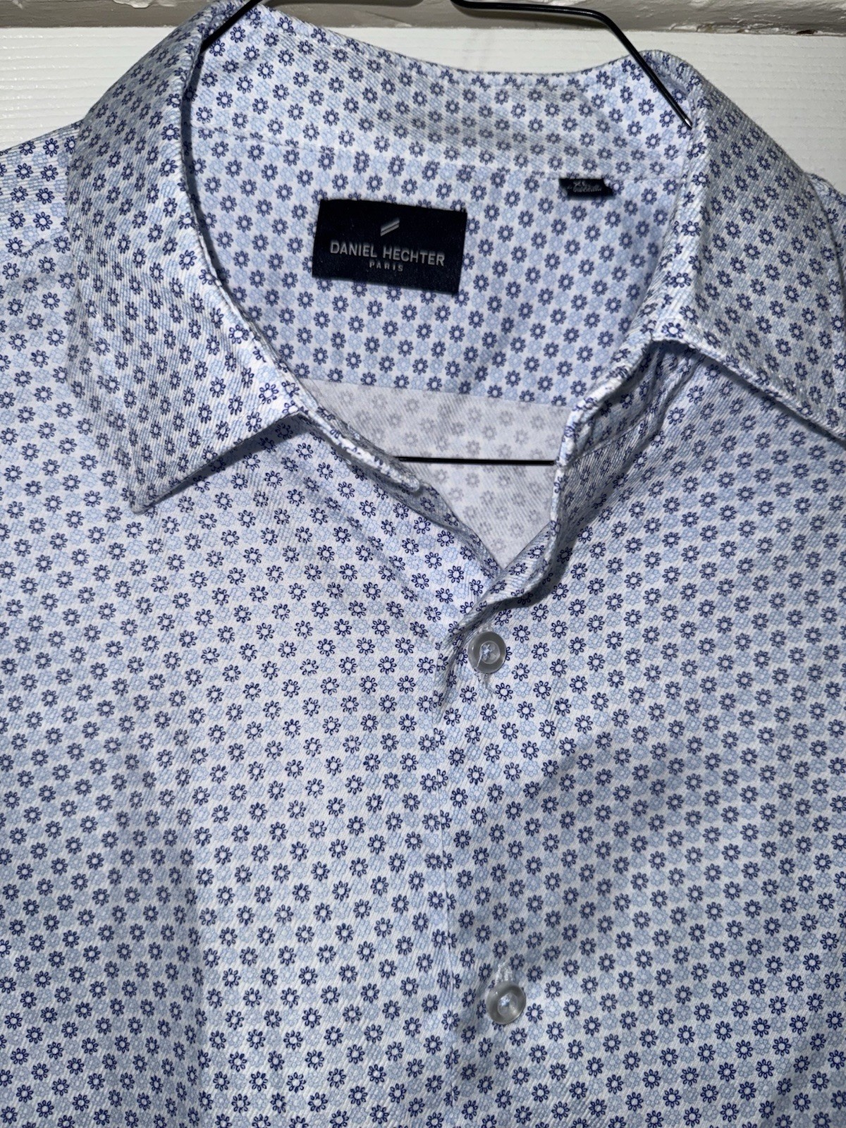 Daniel Hechter Paris long-sleeve button-down with a blue floral micro-print patt