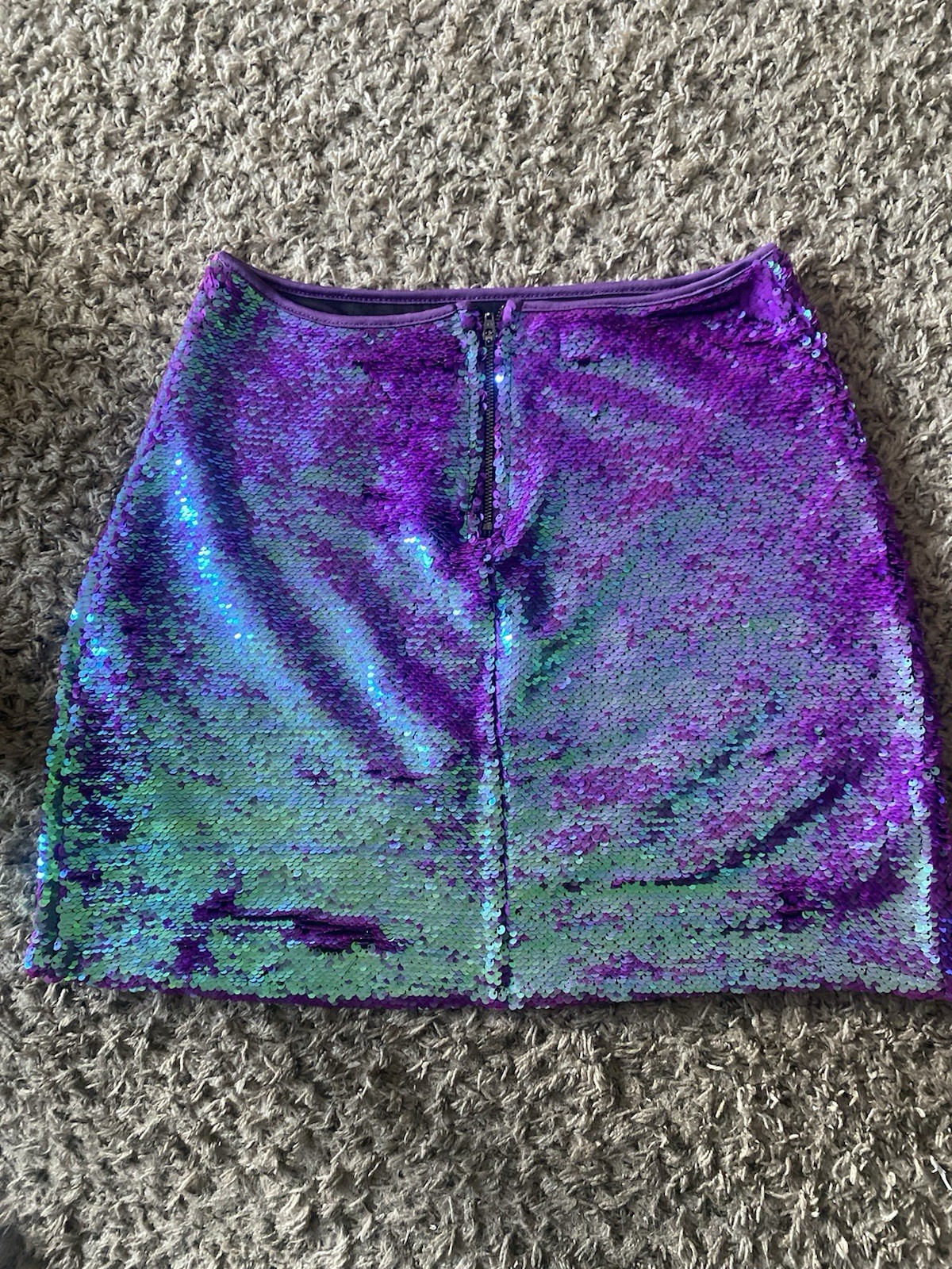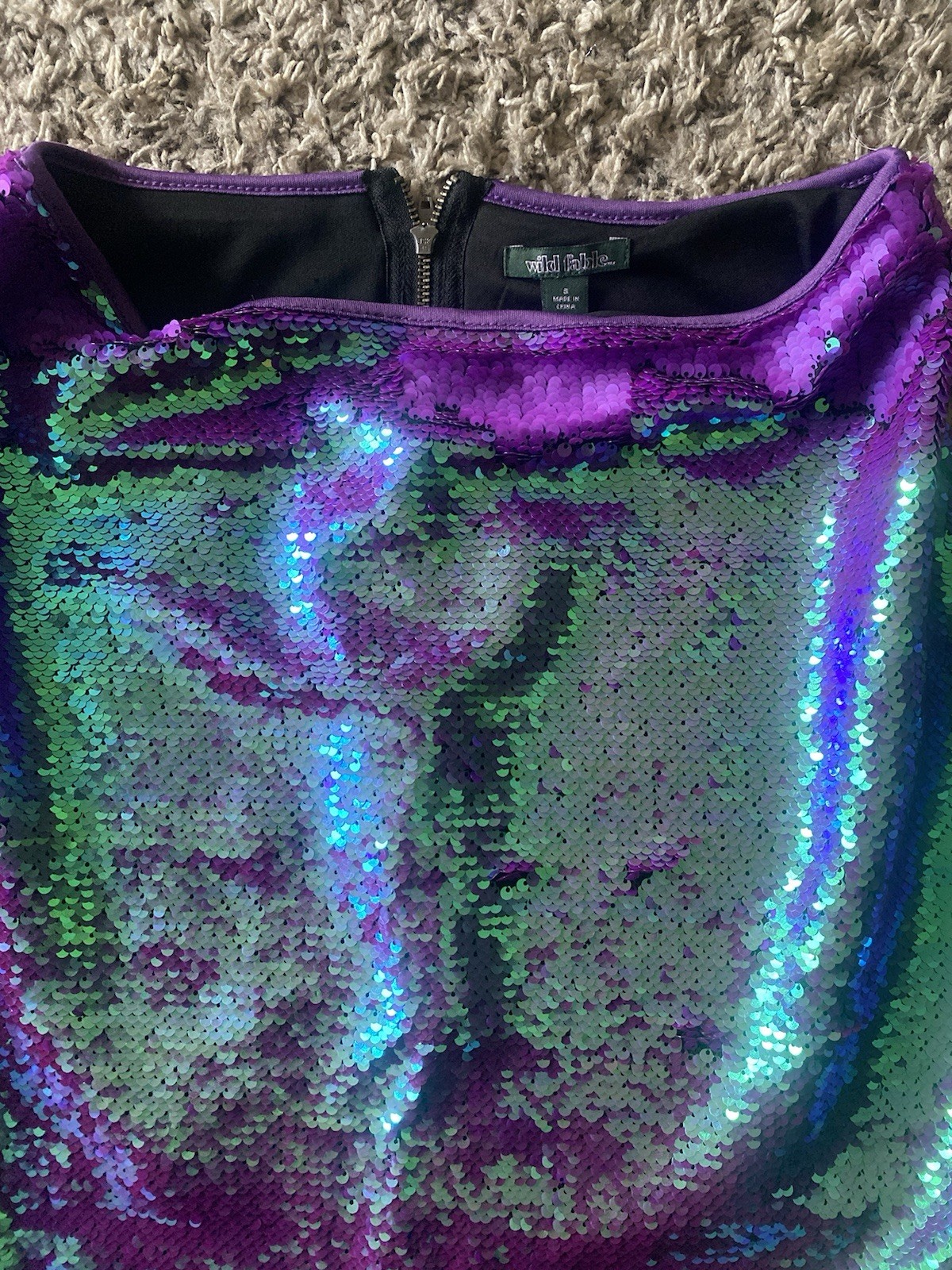 Wild Fable, Fire purple and teal flip sequin mini skirt