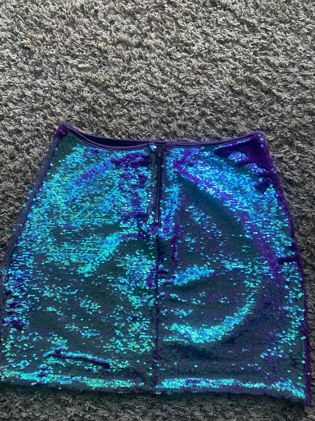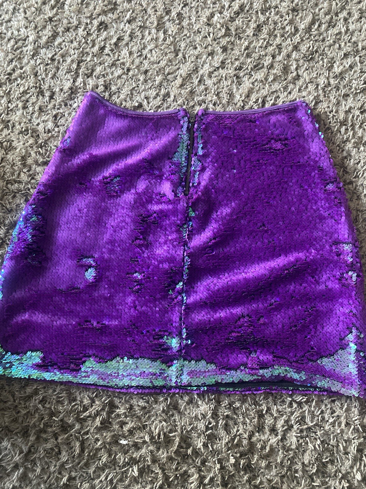 как выглядит Wild Fable, Fire purple and teal flip sequin mini skirt фото