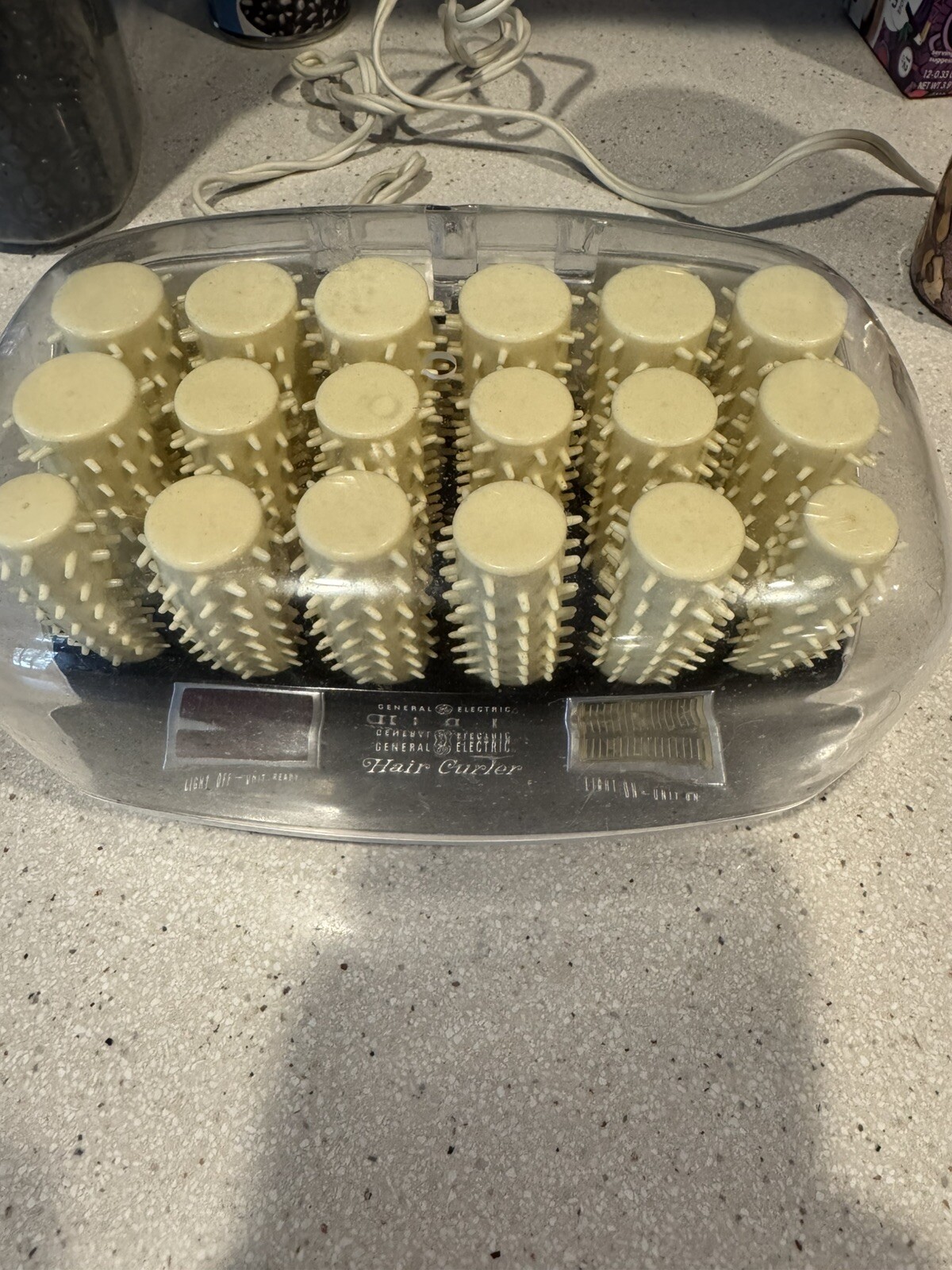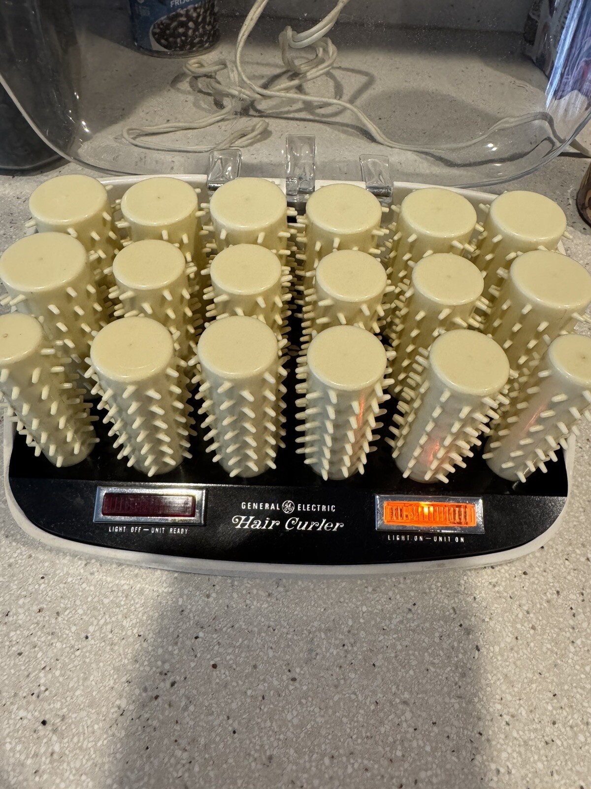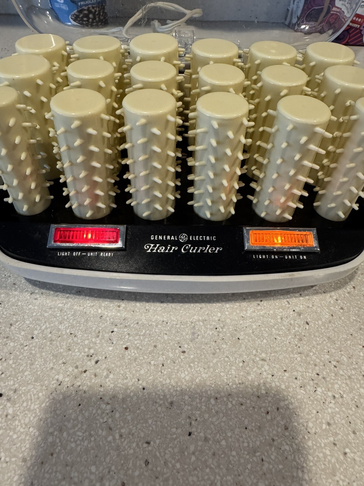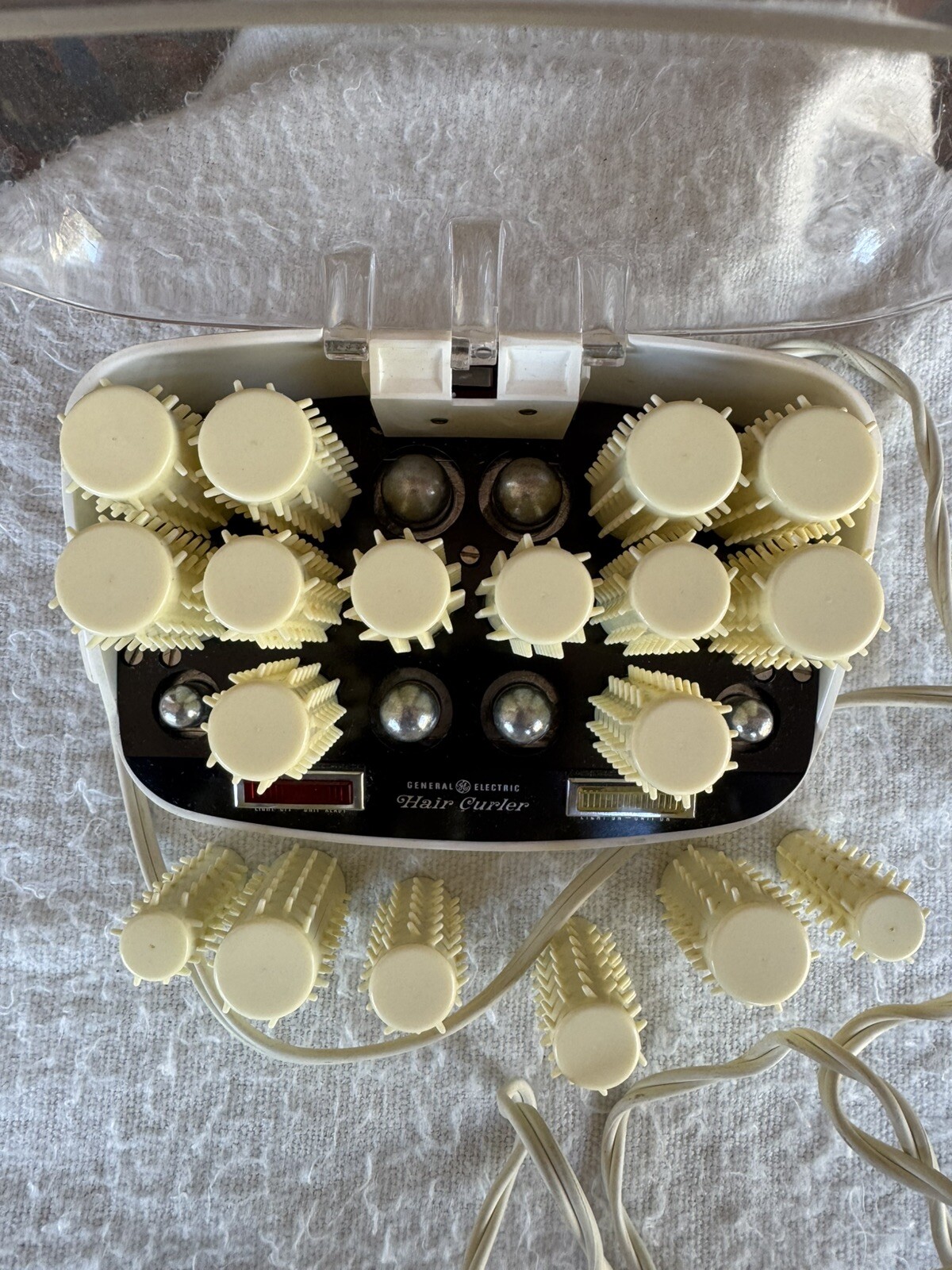 GE Hair Curler 18 Hot Rollers Curlers Pageant Travel Case Made Italy Working