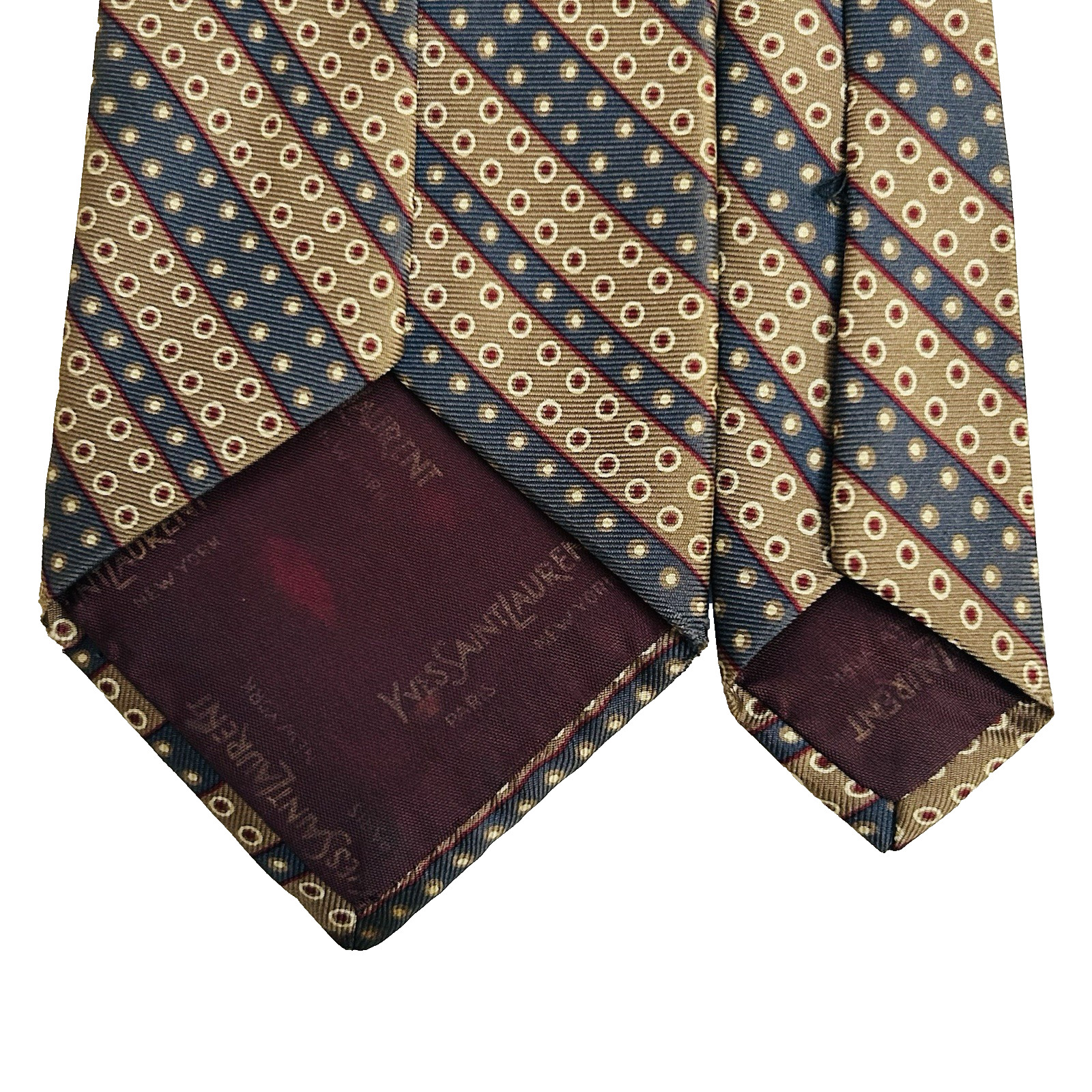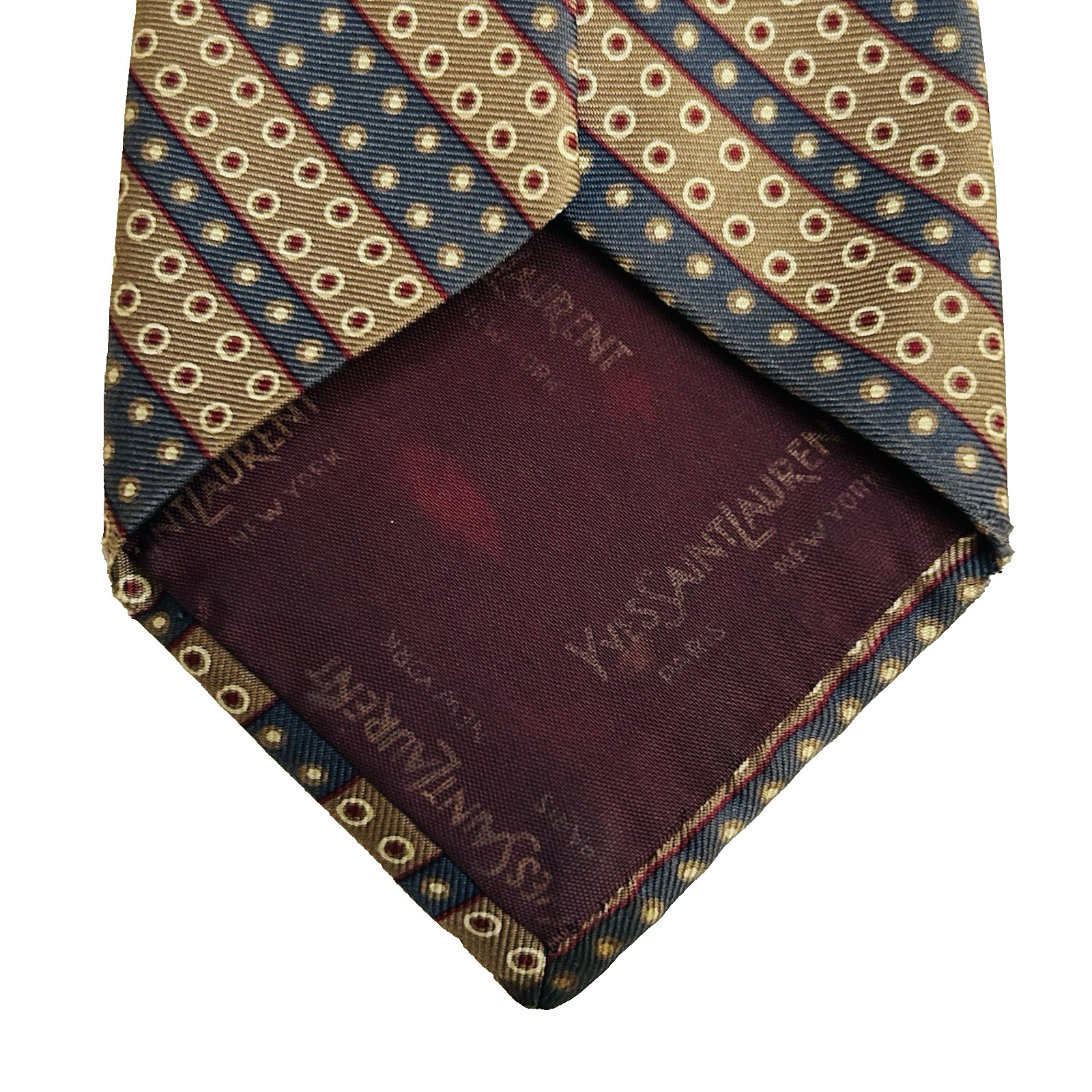Yves Saint Laurent YSL Silk Tie Brown Gold Geometric Print Vintage 3 x 55.75