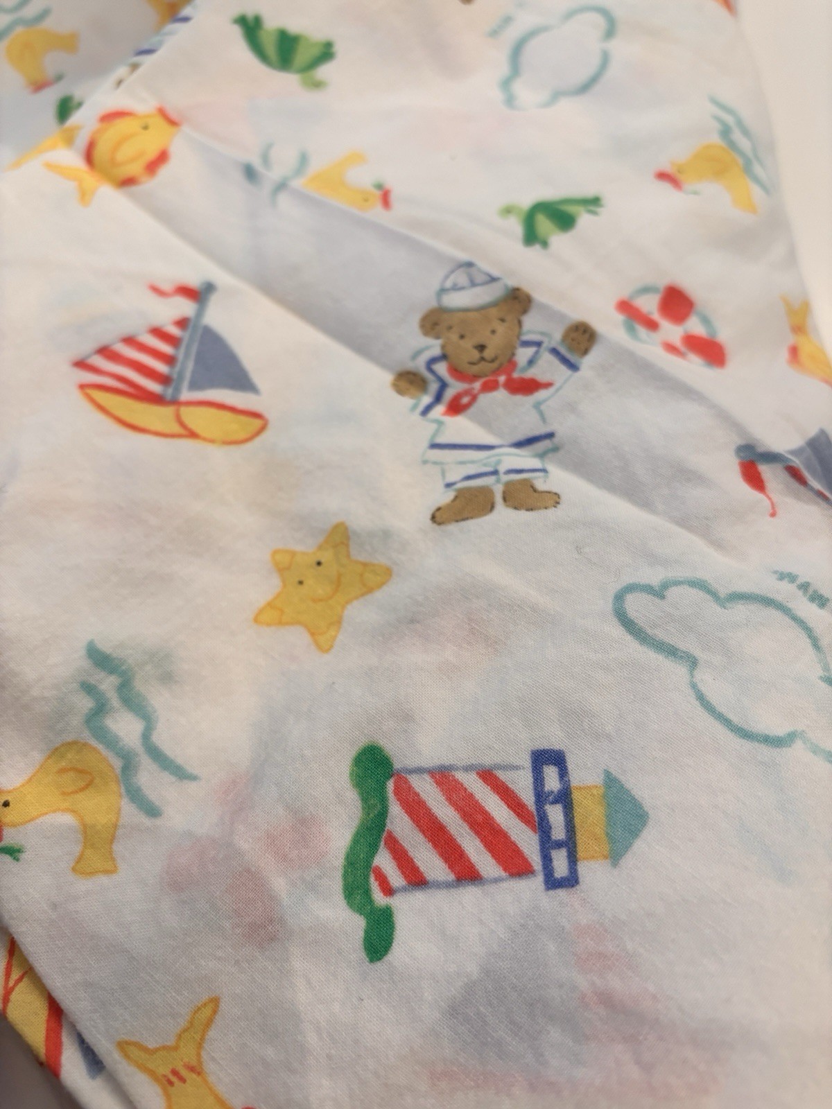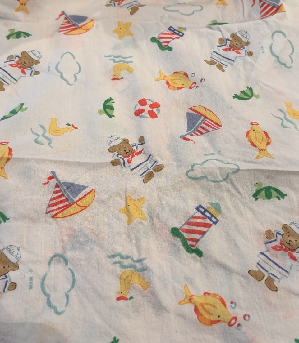 Vintage Teddy Beddy Bear Cotton Crib Sheet Riegel ROM 100 Cotton Sailboat