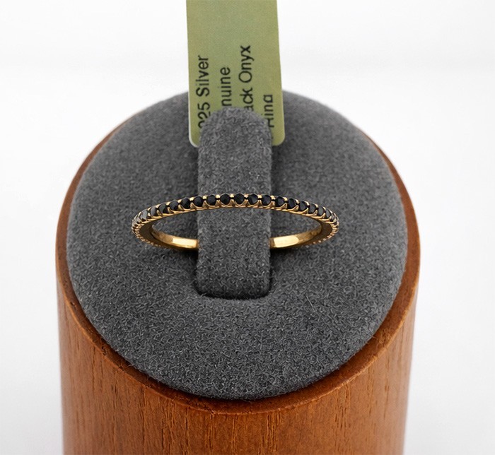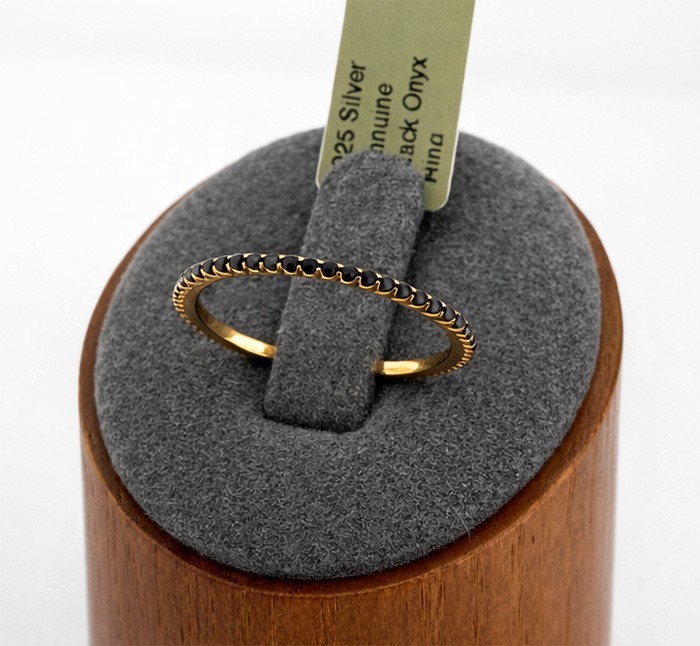 как выглядит GENUINE BLACK ONYX RING .14K YELLOW GOLD PLATED .925 - NWT фото