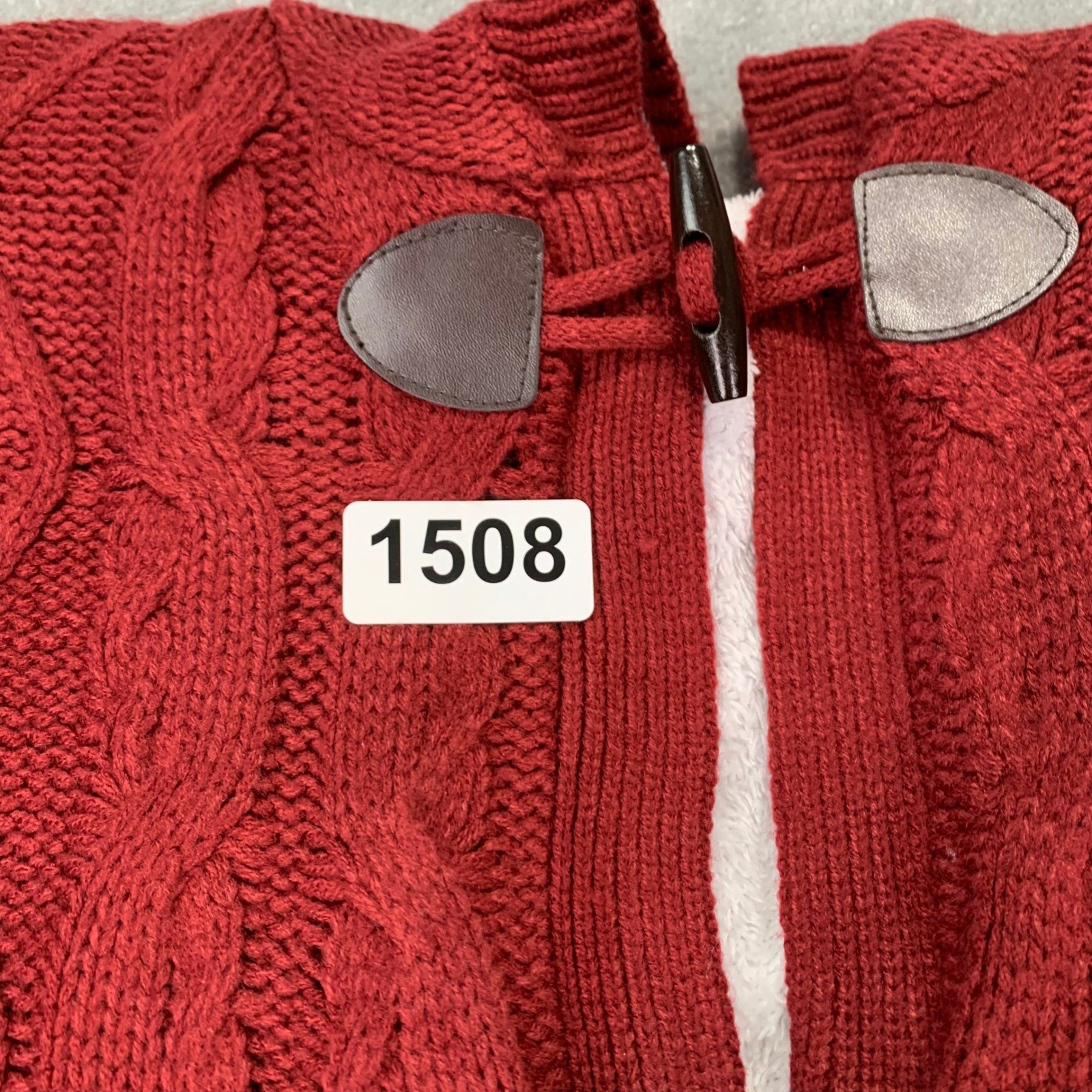 как выглядит Red Cable Knit Toggle Cardigan Hooded Sherpa Lined Chunky Cozy Sweater XL фото