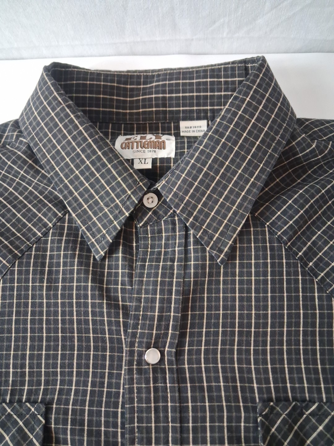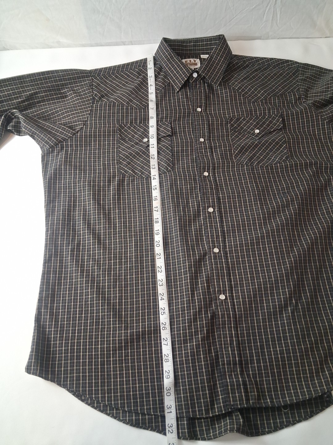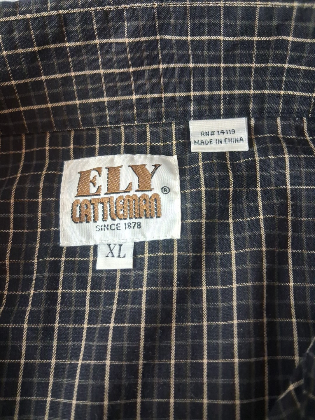 как выглядит Ely Cattleman Pearl Snap Shirt Men s XL Black Plaid Button Up Western Rodeo фото