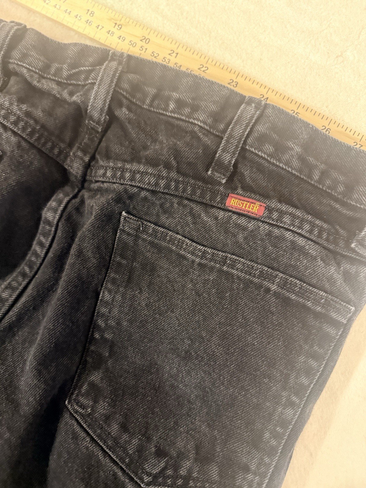 Vintage Rustler Denim Jeans 36x32 Mens Black Cotton Straight Dark Wash Regular