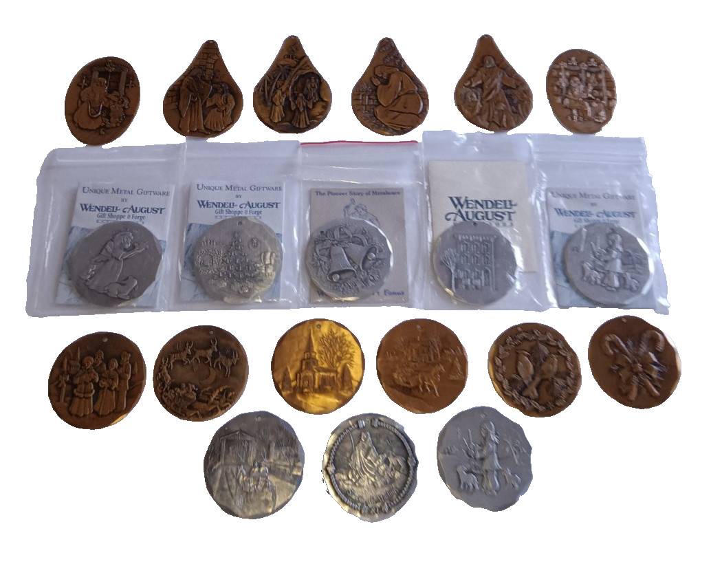 20 Vtg Wendell August Forge Xmas Metal Ornaments Aluminum Bronze Santa Religious