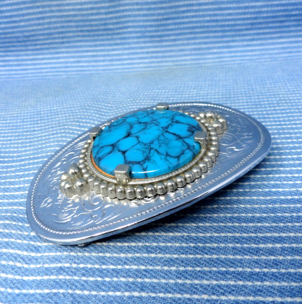 как выглядит Cowboys Cowgirls Western Scroll Belt Buckle Blue Faux Turquoise Vtg 80s .CPA718 фото