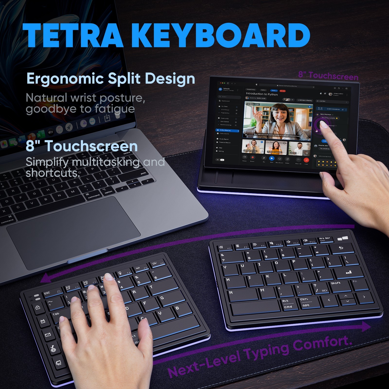MP Mobile Pixels Tetra Wireless Ergonomic Keyboard, Split Keyboard with display