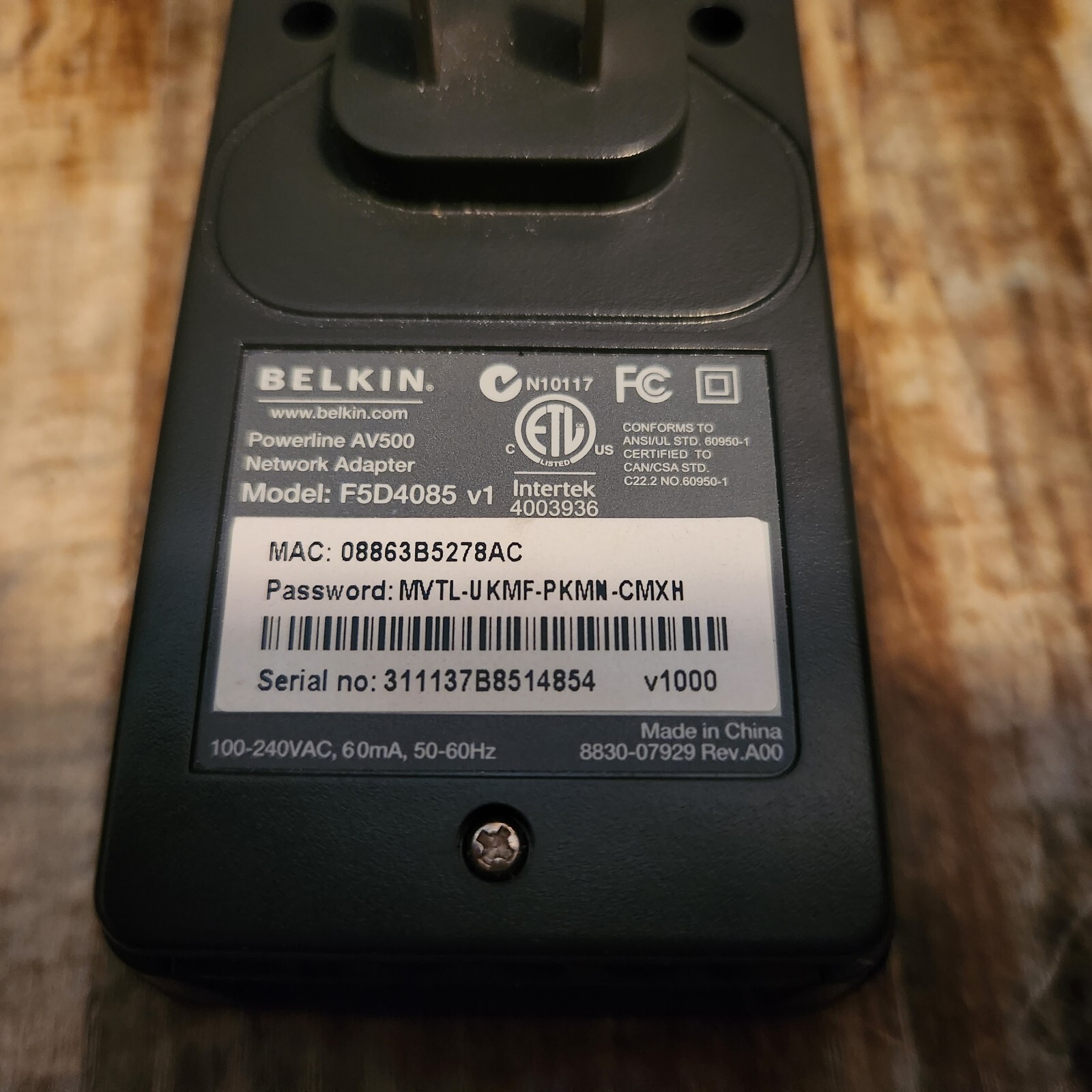 Belkin F5D4085 Black Version 1 genuine Powerline AV500 network Adapter