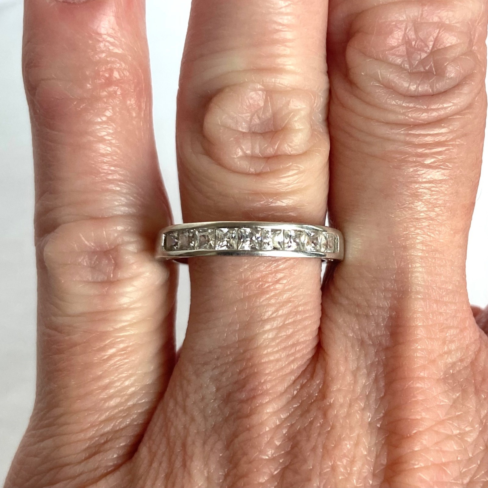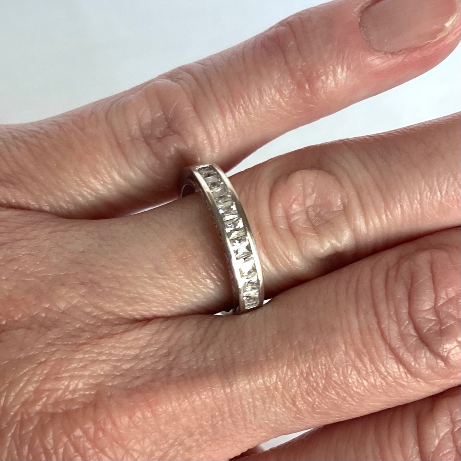 как выглядит Sterling Silver 925 Channel Set Square Cubic Zirconia Wedding Band Ring Sz 6.75 фото
