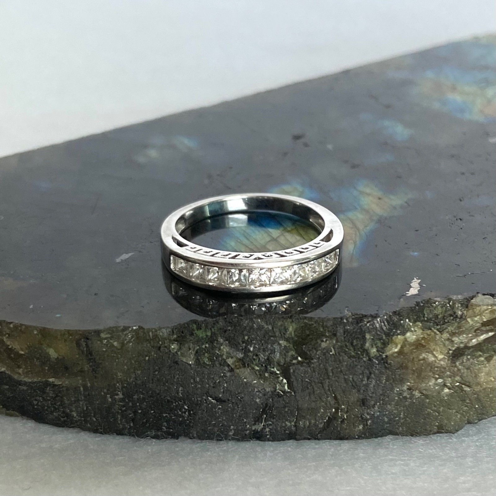 Sterling Silver 925 Channel Set Square Cubic Zirconia Wedding Band Ring Sz 6.75