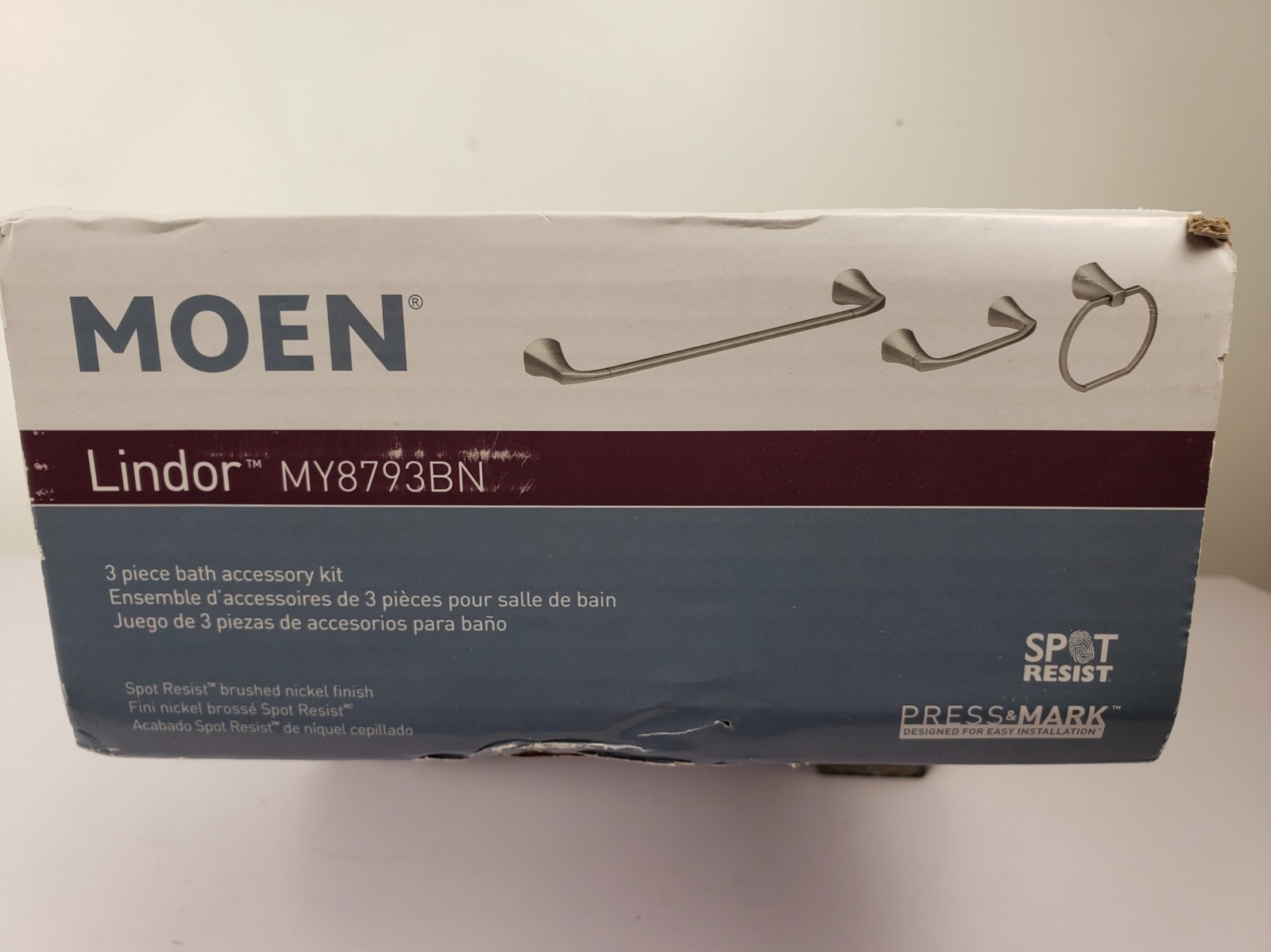 Moen MY8793BN Lindor Bath Accessory Set Brushed Nickel TP Holder Towel Bar Ring