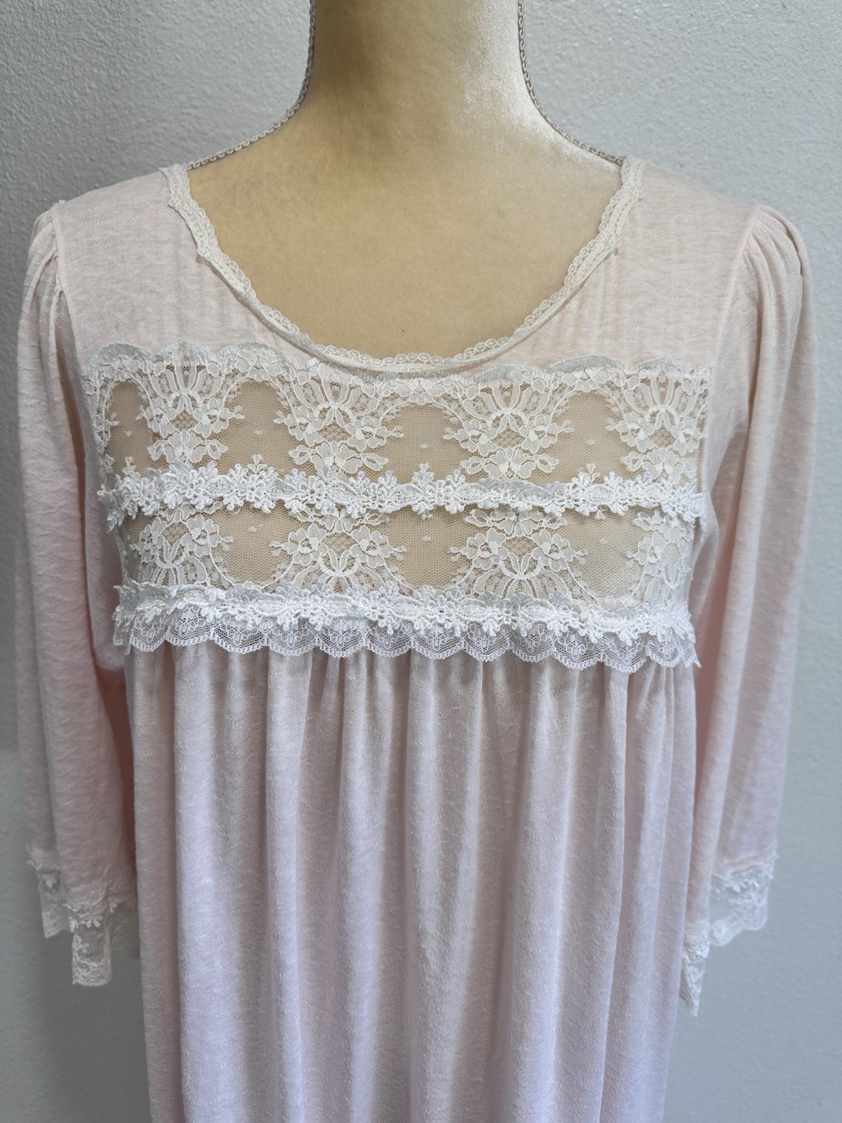 как выглядит Vintage Christian Dior Womens 100 Cotton Lace Trimmed Pink Nightgown Size Small фото