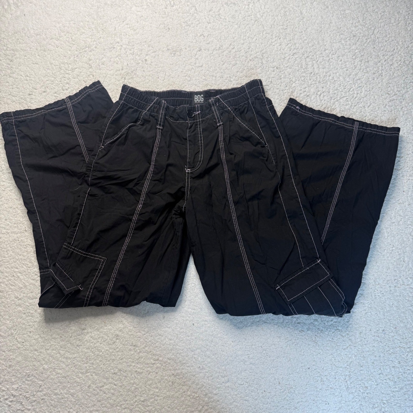 как выглядит BDG Urban Outfitters Y2K Cargo Pants Black Wide Leg Womens Medium фото