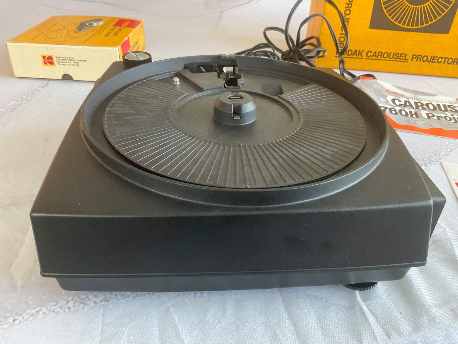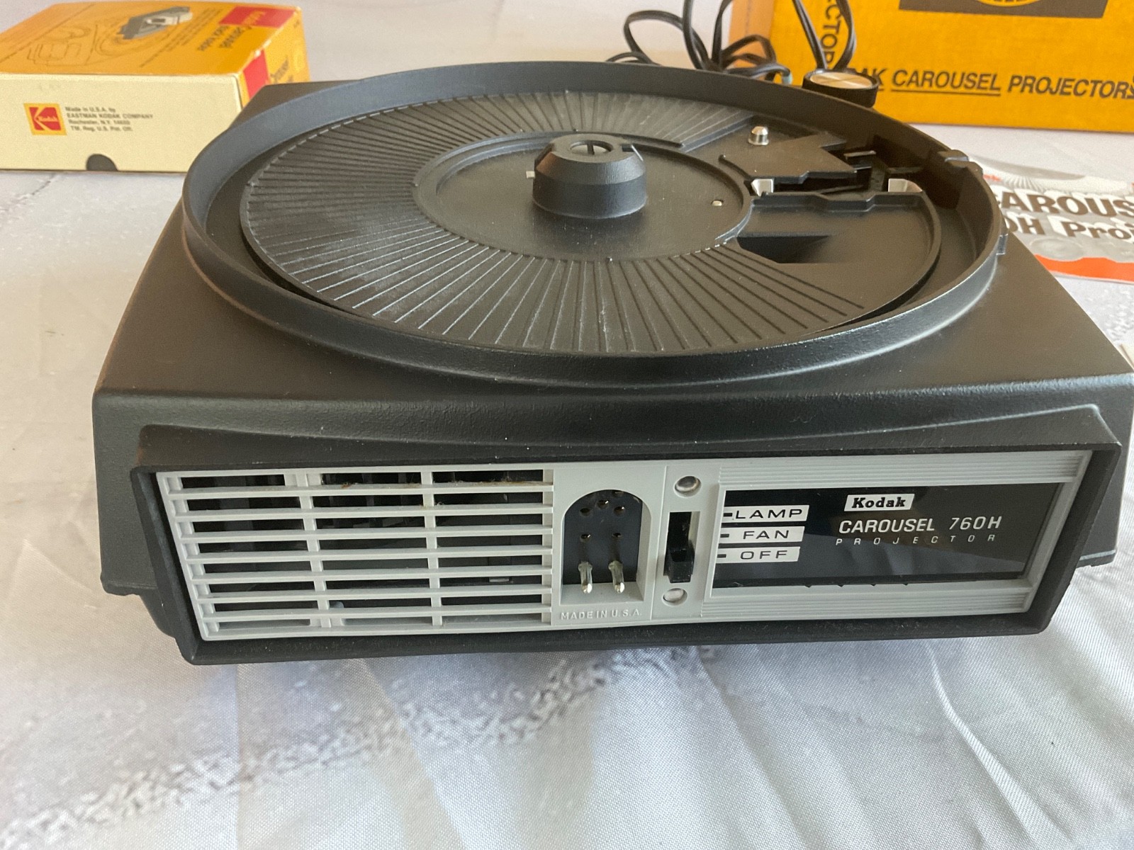 как выглядит Kodak Carousel 650H Slide Projector w/Box Remote manual fan runs and lights up фото