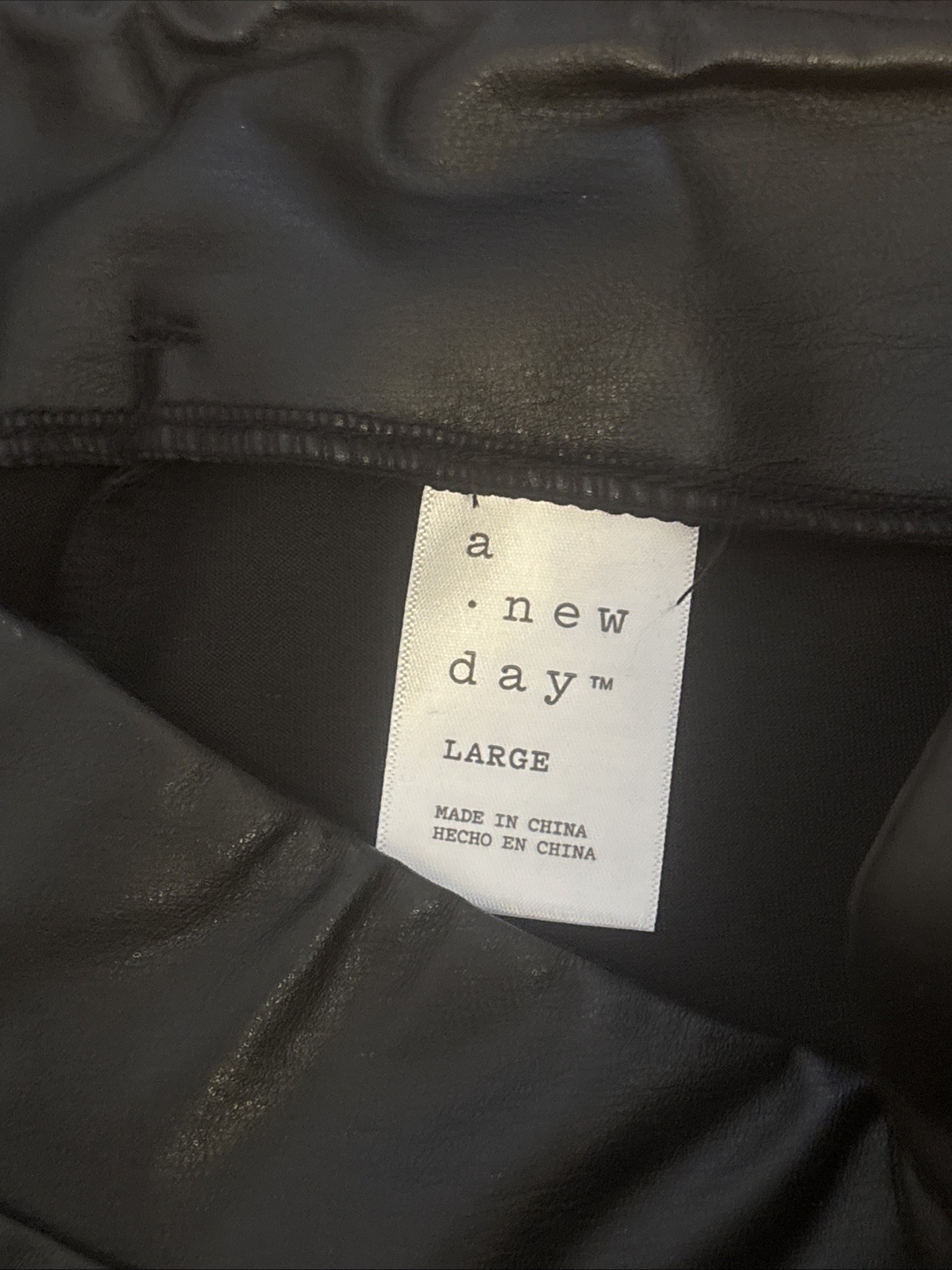 A New Day Women's Stretch High Rise Pull On Faux Leather Vegan Pants Large