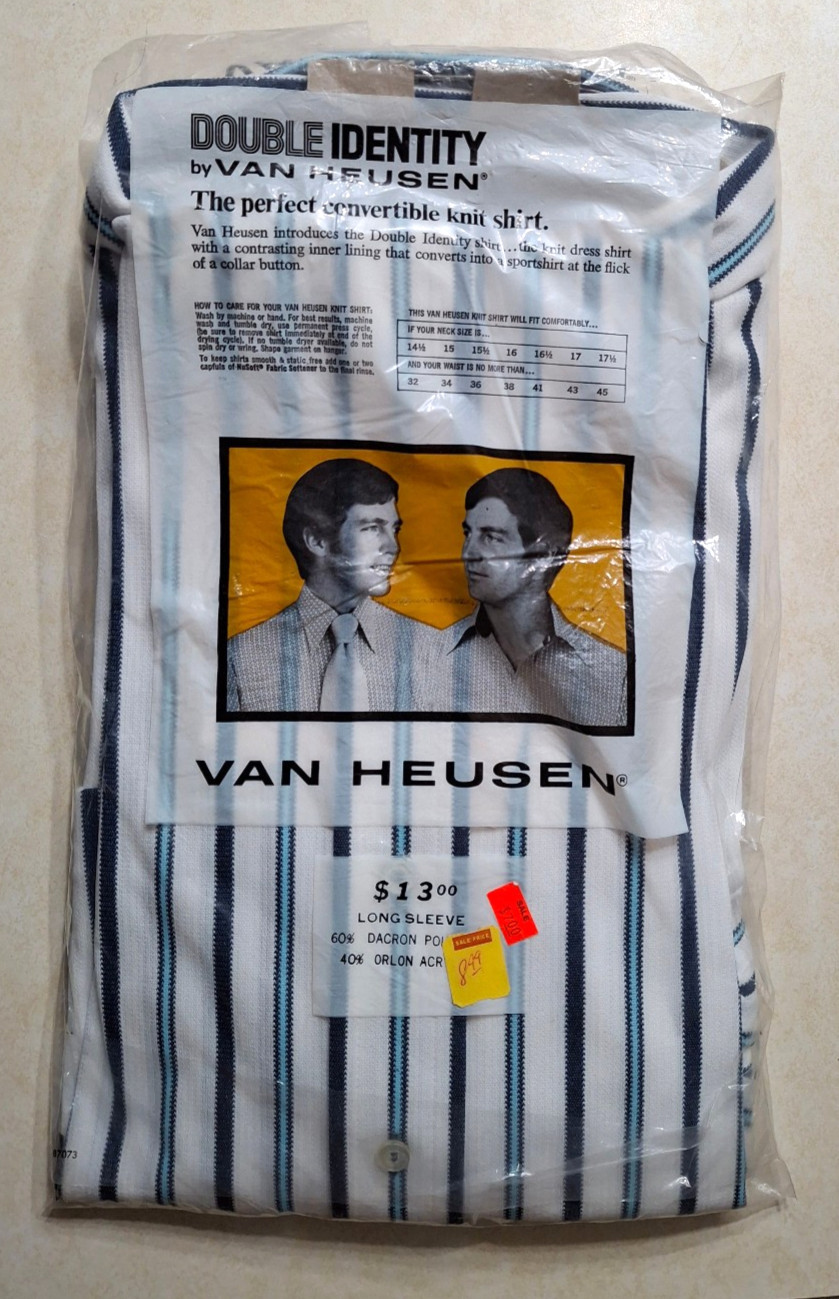 как выглядит Vintage Van Heusen Mens Knit Shirt Long Sleeve Collar Button 16/33 1970s NEW фото