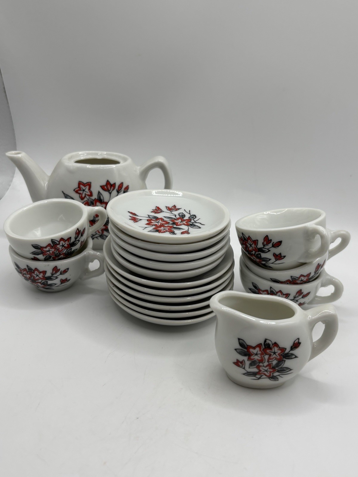 Vintage Miniature 18 Pc Tea Set Floral Japan Porcelain Children READ