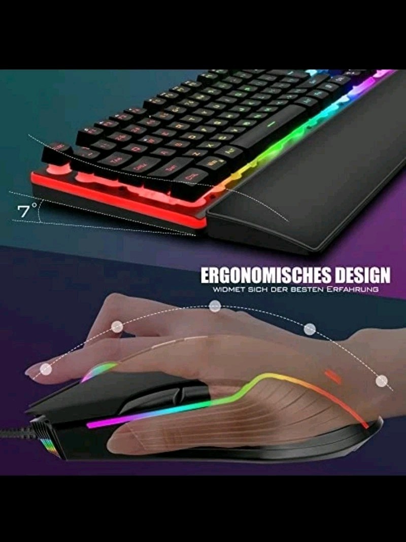 RedThunder K10 Wired Keyboard Mouse Wrist Rest Combo RGB 3 in 1 PC Gaming Black