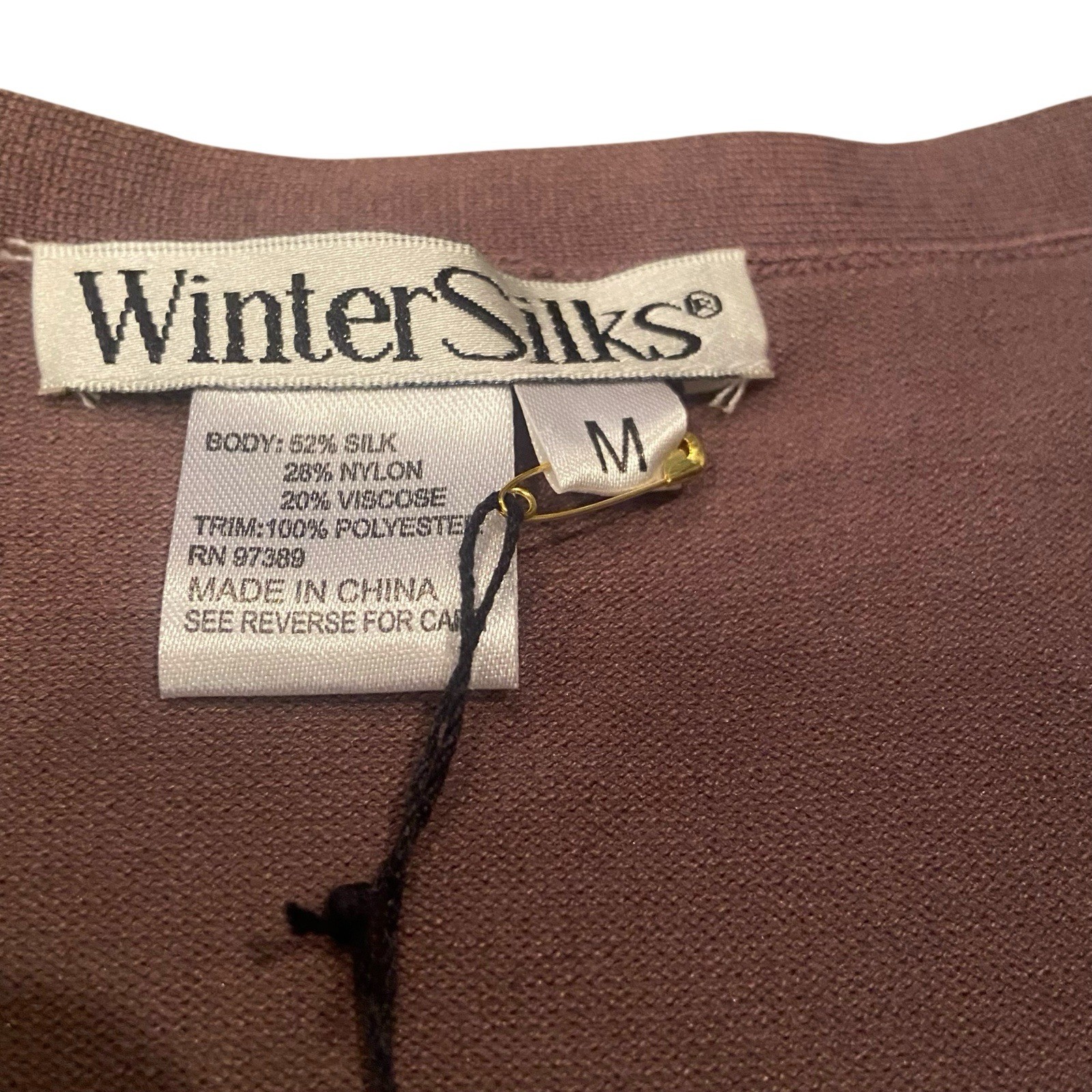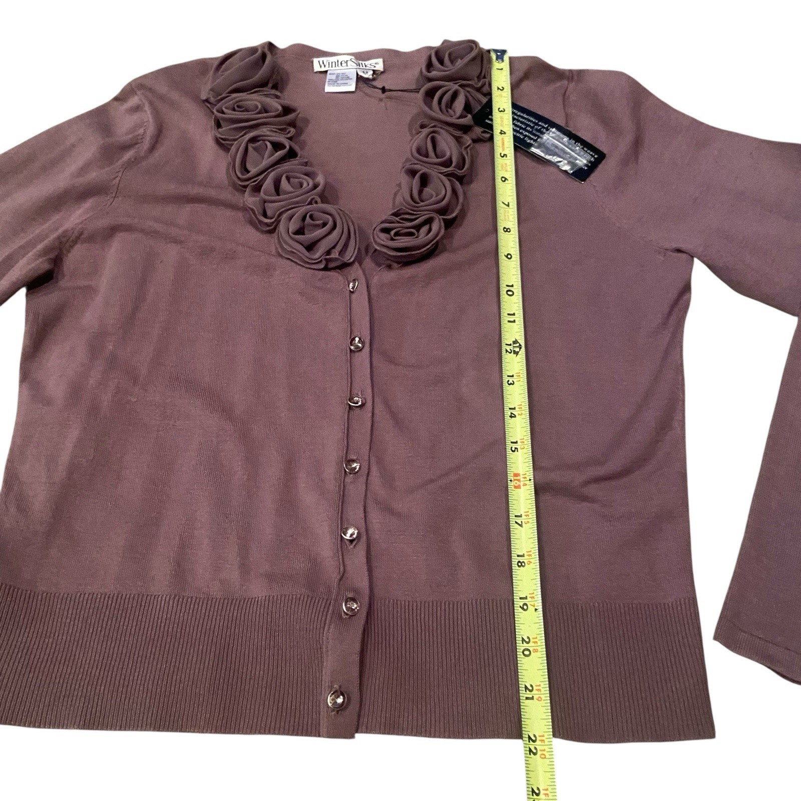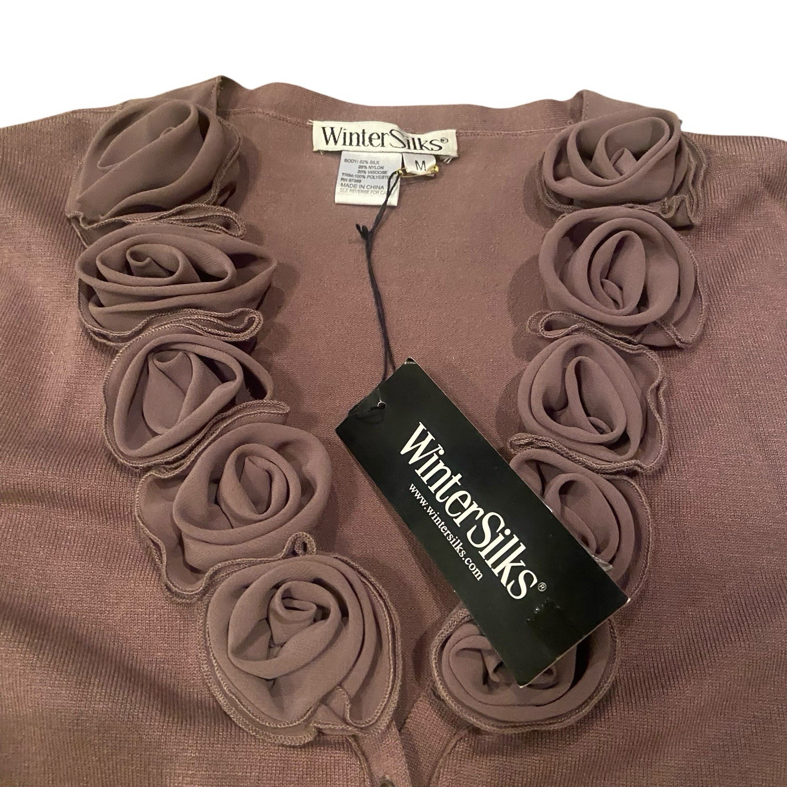 WinterSilks Cardigan Women s Medium Ruffled V-Neck Long Sleeve Mauve Sweater