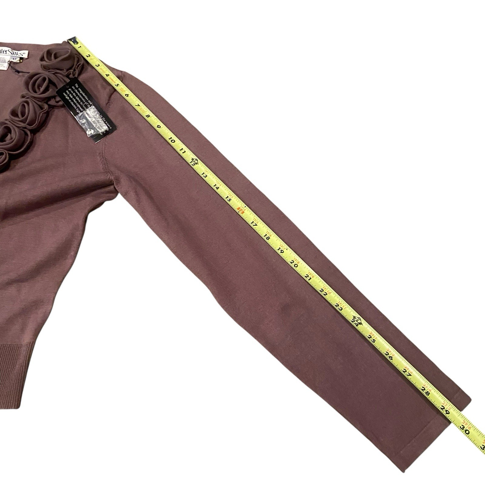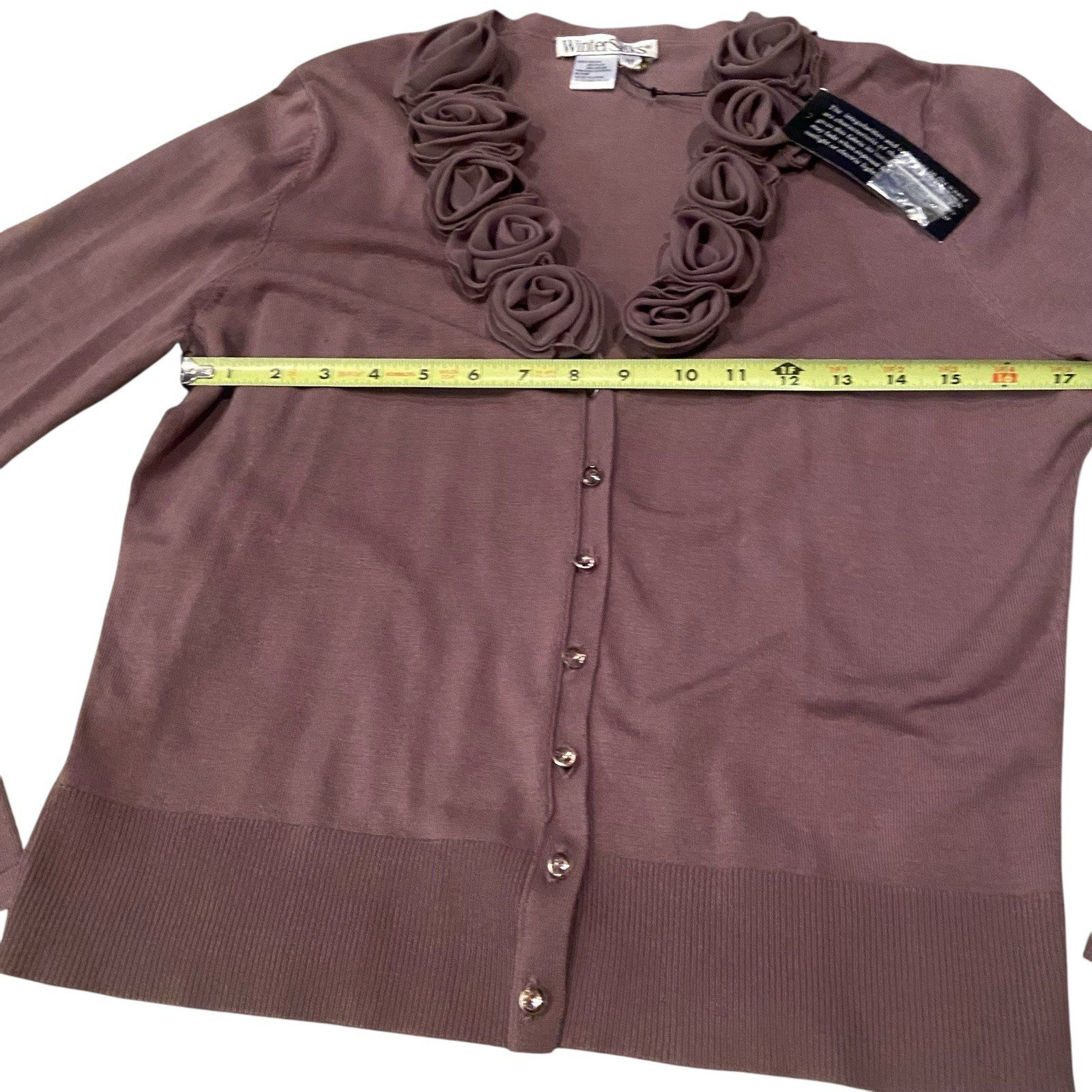 как выглядит WinterSilks Cardigan Women s Medium Ruffled V-Neck Long Sleeve Mauve Sweater фото