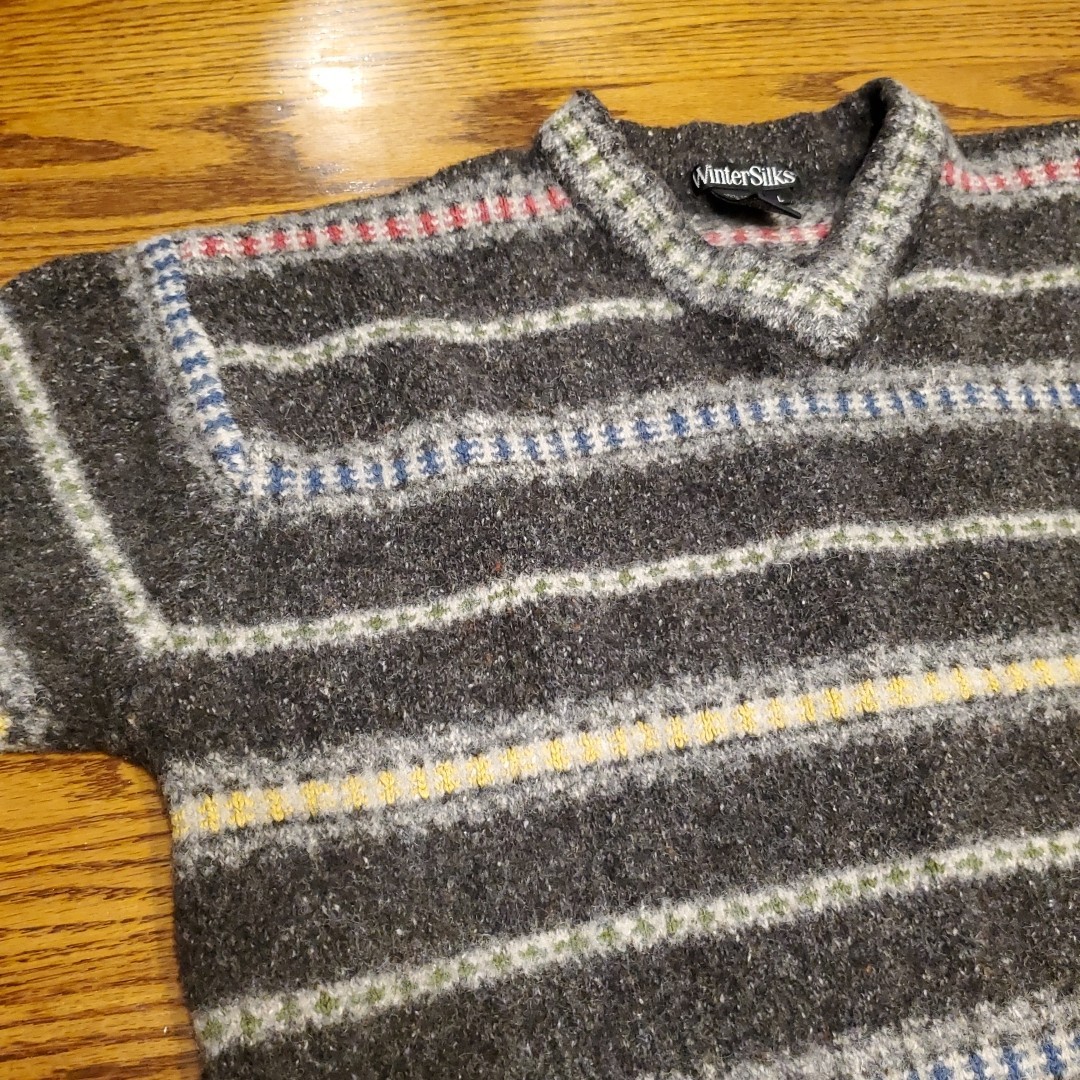как выглядит WinterSilks Sweater Womens Large Black Red Yellow Blue Green Knit Silk Wool фото