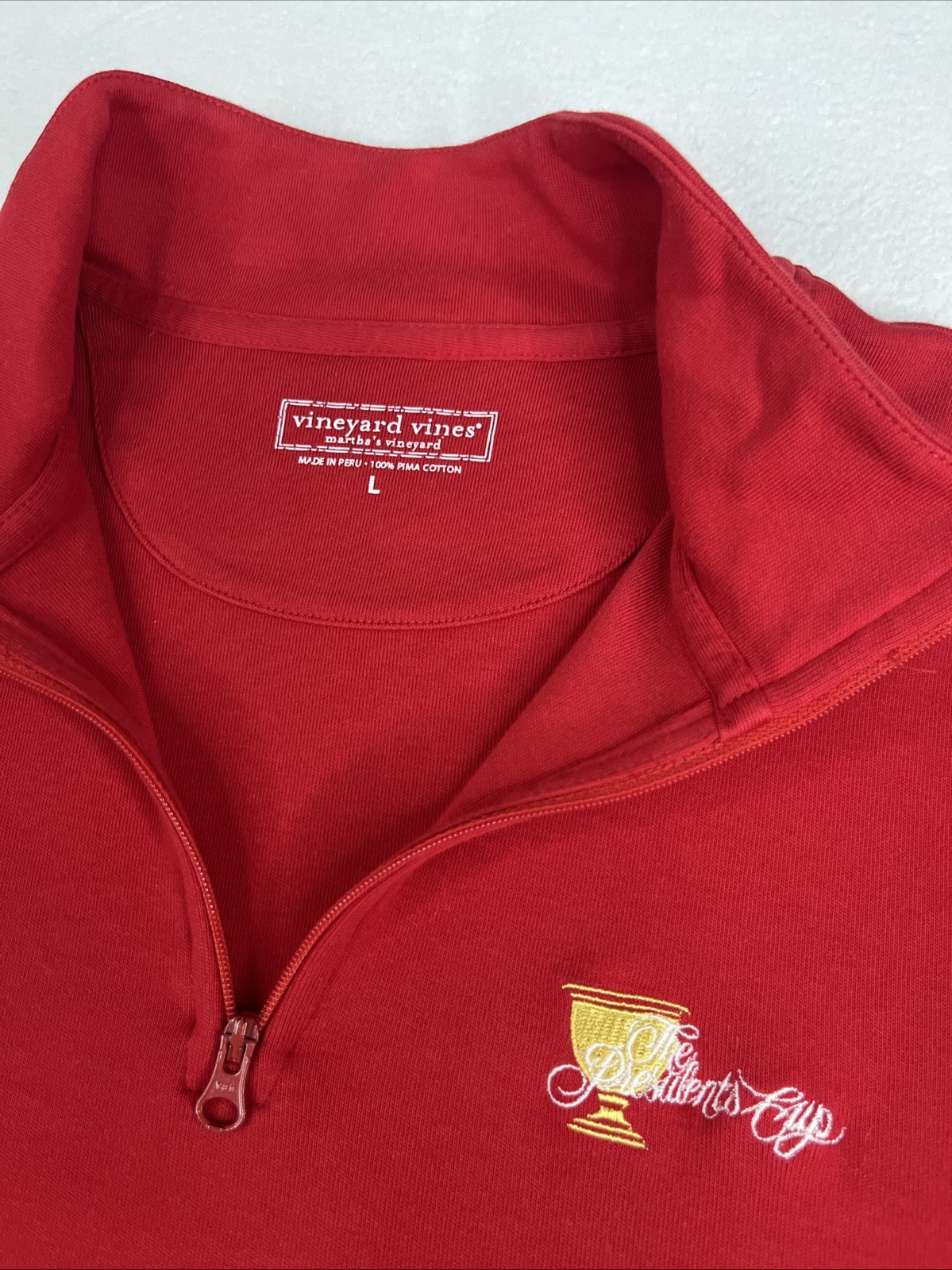 Vineyard Vines Martha Vineyard 1/4 Zip Pullover Mens L Red Cotton Presidents Cup