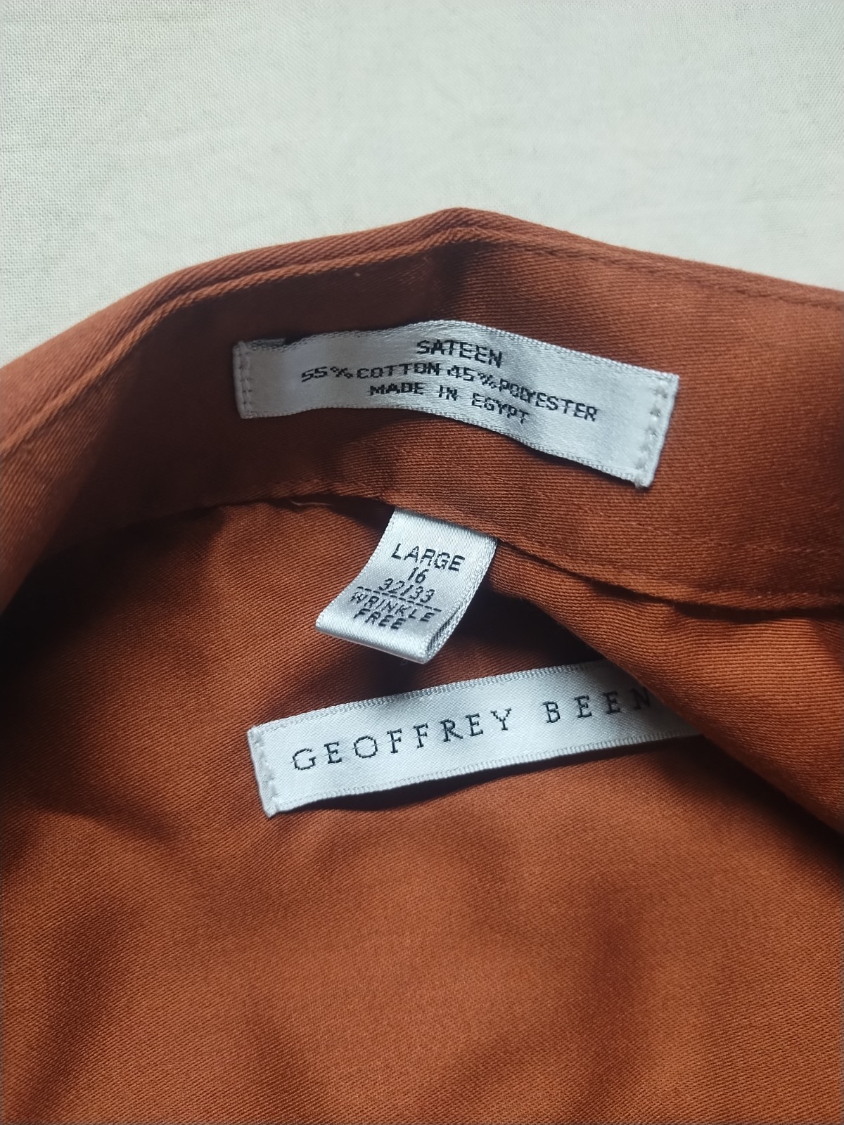 как выглядит Geoffrey Beene Sateen Button Up Dress Shirt Mens Size Large 16 32/33 Copper фото