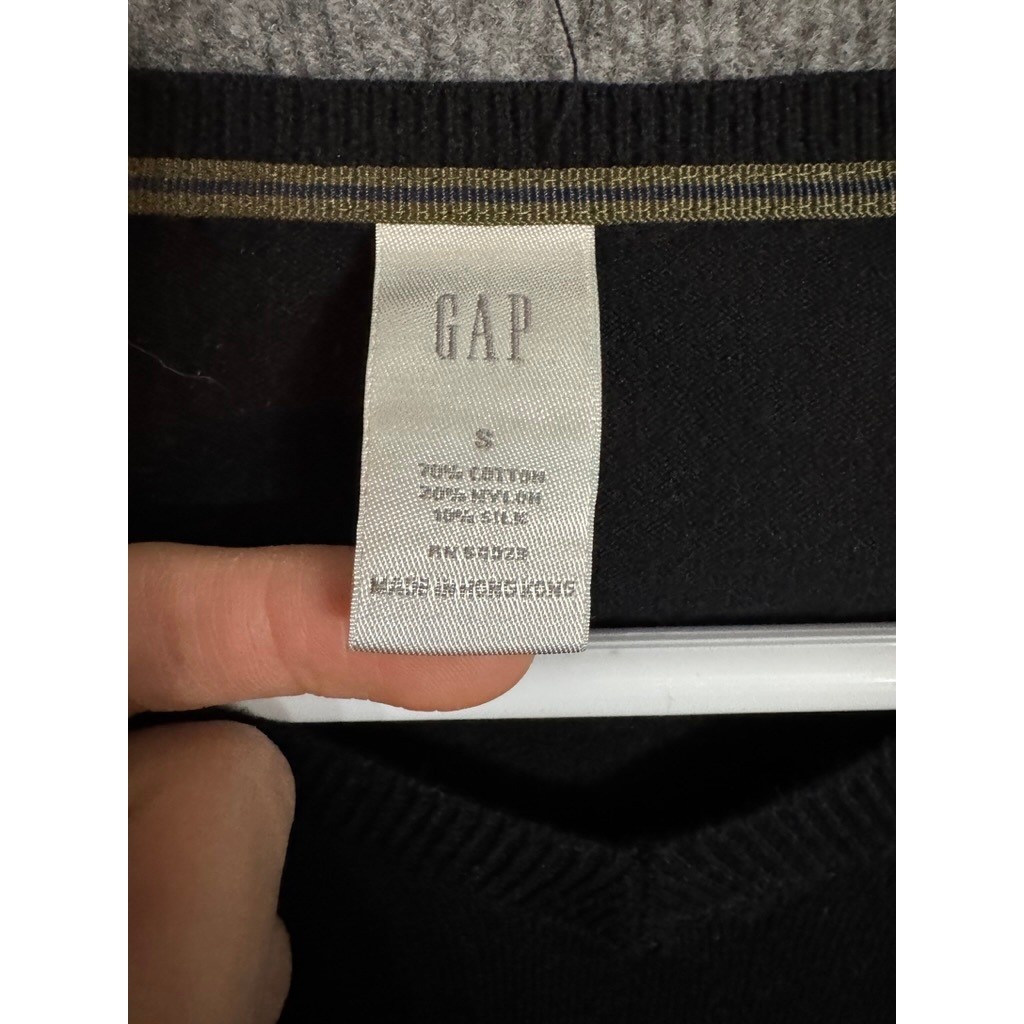 как выглядит Vintage Gap Mens V-Neck Sweater Black Cotton Silk Blend Pullover Small RN54023 фото