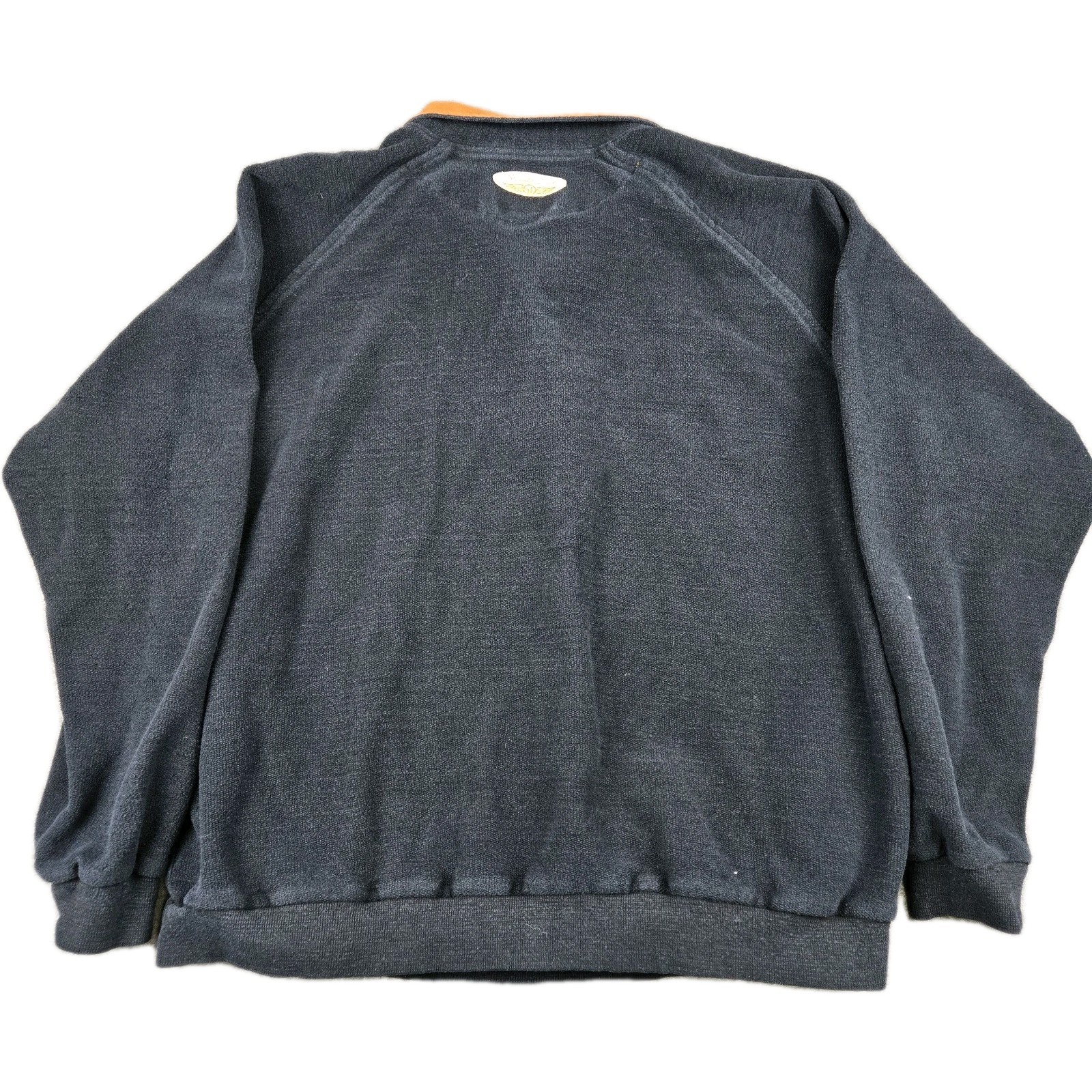 Straight Down Golf Sweater Mens Large Black Pullover Henley USA Suede Collar