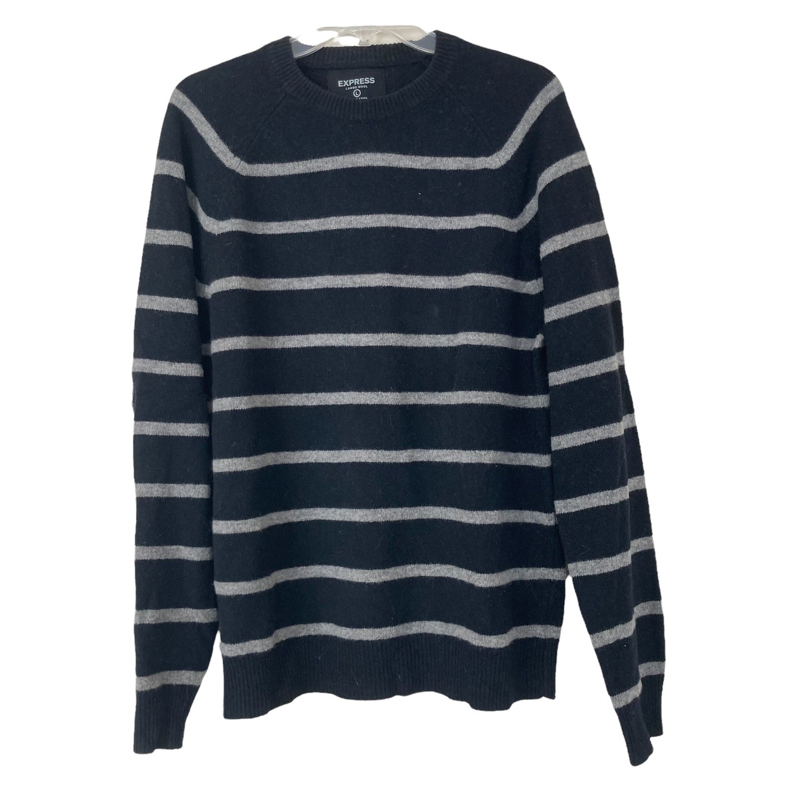 как выглядит Express 100 Lambswool Black Striped Sweater Sz L фото
