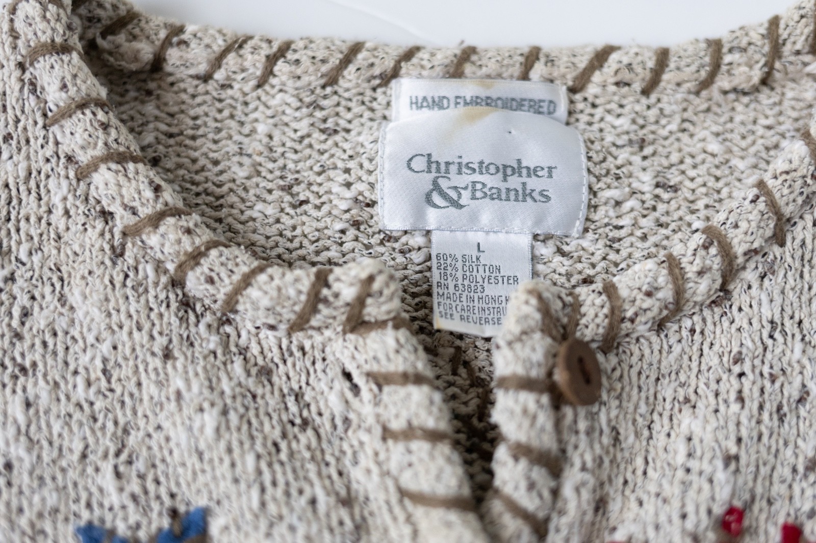 как выглядит Christopher Banks Vintage Size Large Knobby Yarn Sweater Silk Blend Outdoors фото