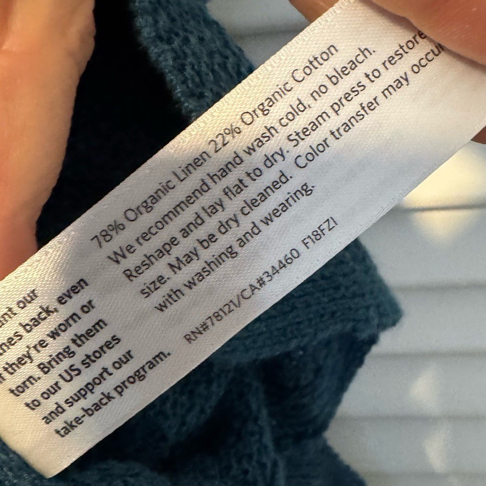 как выглядит Eileen Fisher Peacock Blue Organic Linen Cotton V-Neck Sweater Size small фото