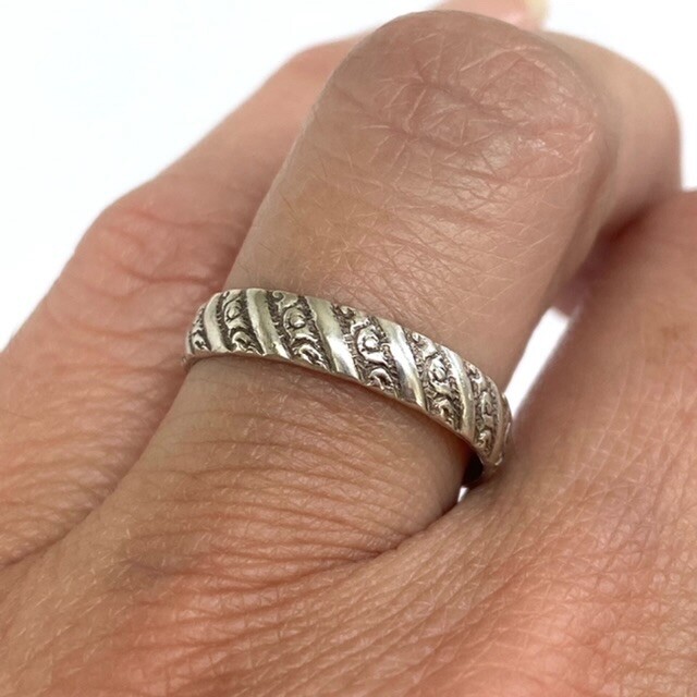 как выглядит Sterling Silver 925 Textured Diagonal Pattern Band Wedding Ring Size 6.5 фото