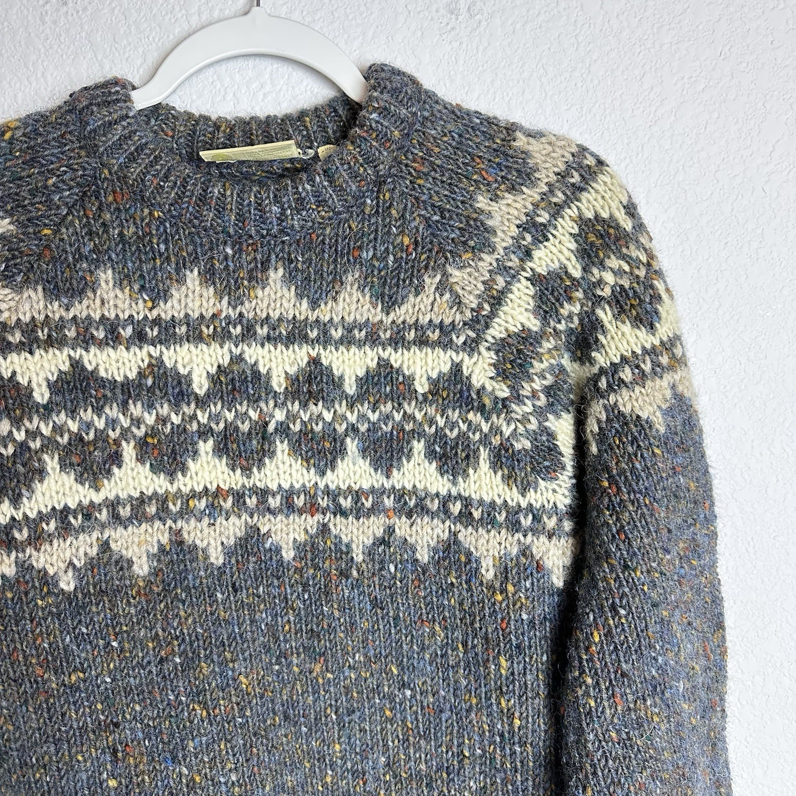 Gaelterra Handloomed Irish Wool Sweater Patterned Cable Knit Crewneck Size 40
