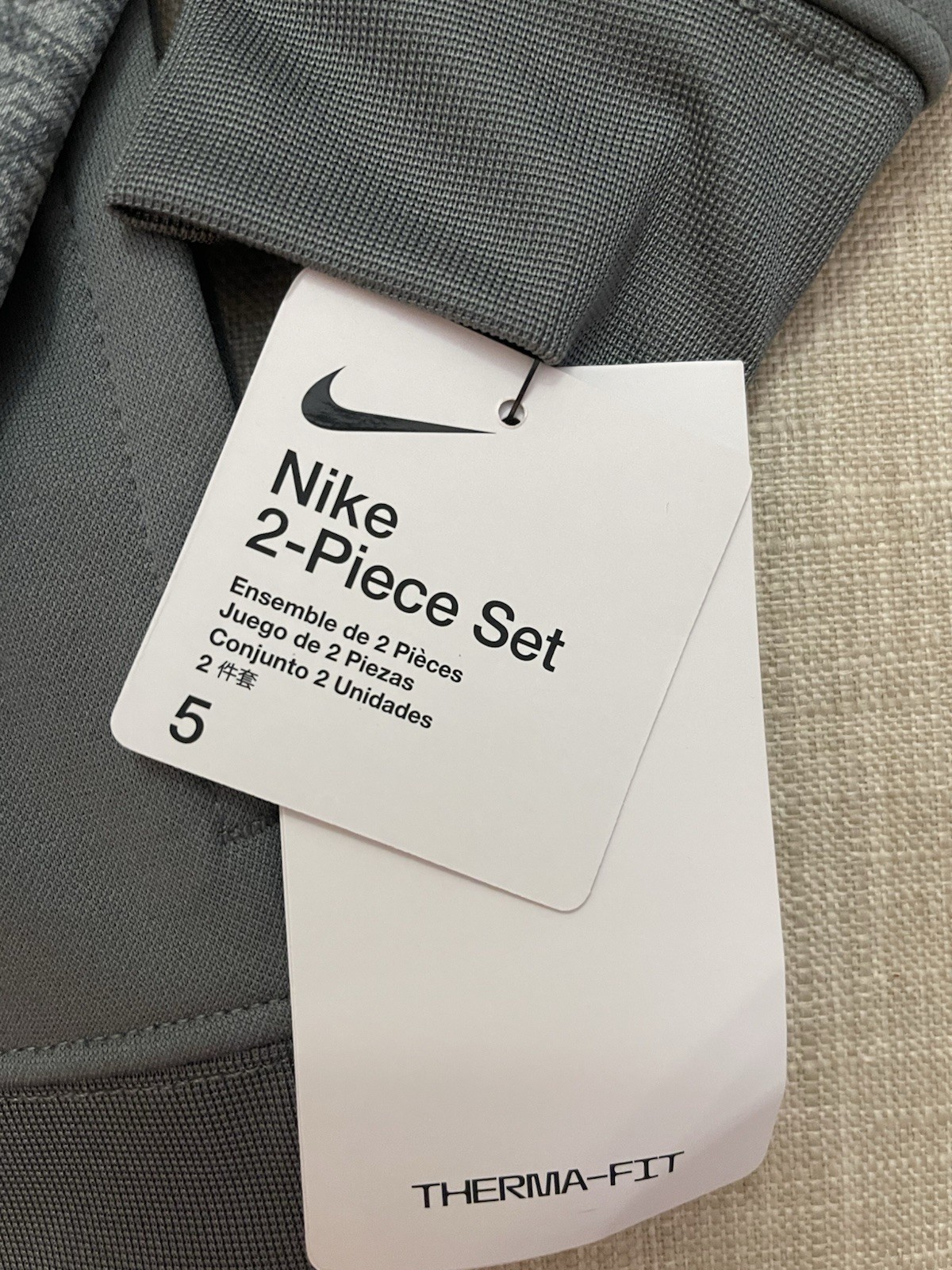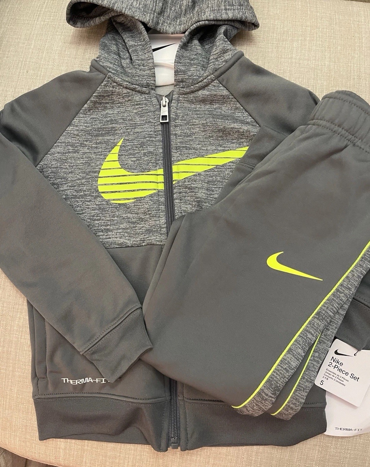 Nike Therma-fit Boys Hoodie Tracksuit Smoke Grey Sz 5/6 Years NWT