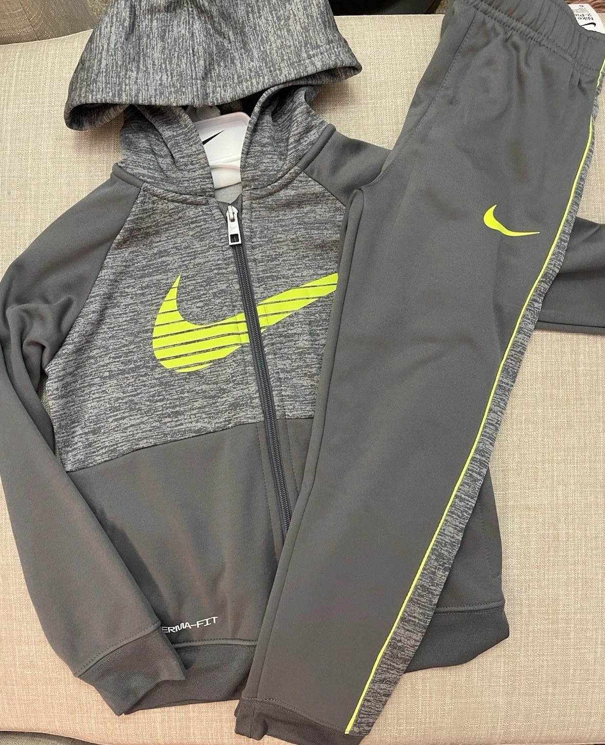 как выглядит Nike Therma-fit Boys Hoodie Tracksuit Smoke Grey Sz 5/6 Years NWT фото