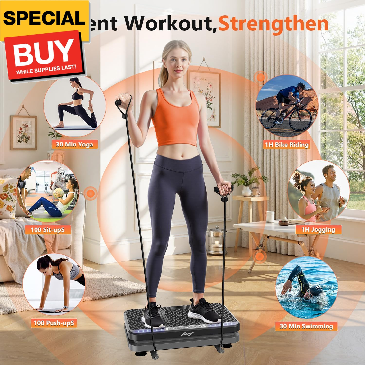 Vibration Plate Fitness Platform Exercise Machine Vibrating Shaking Full Body Sh