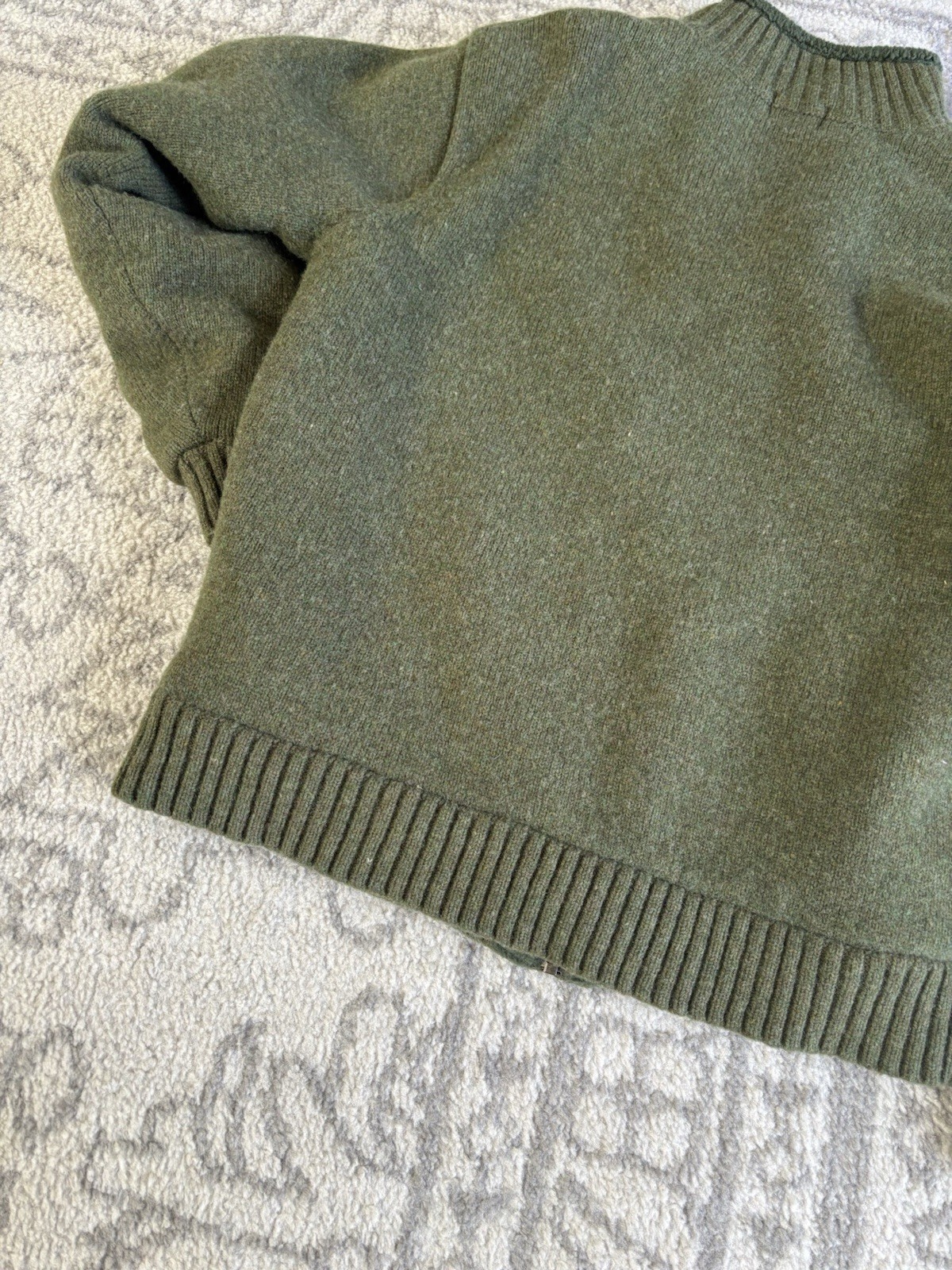как выглядит L.L. Bean Mens Green Lambswool Full Zip Mock Neck Sweater Long Sleeve фото